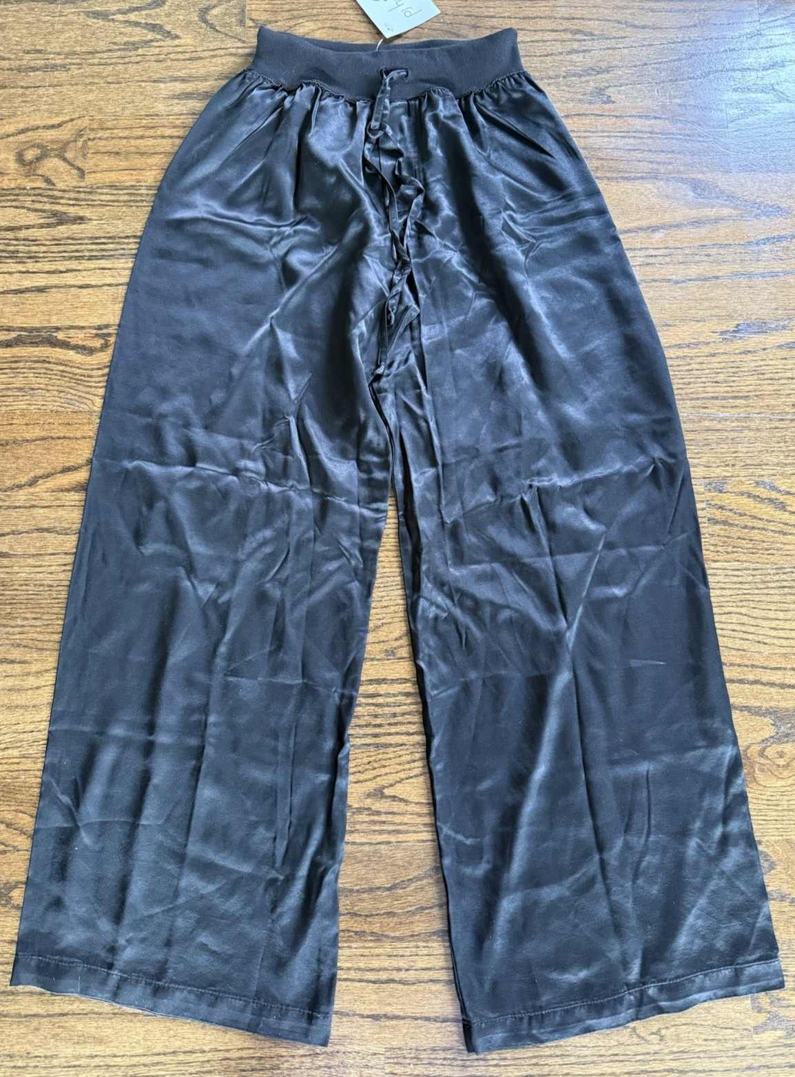 NWT PJ Harlow Jolie Black Satin Pants Womens XS Silky Plazzo Sleep Pants Lounge