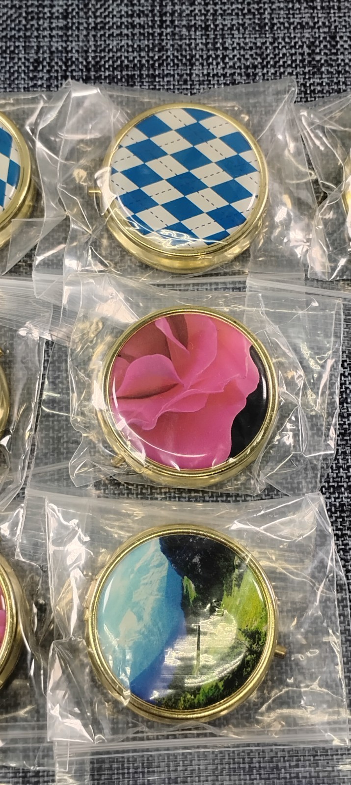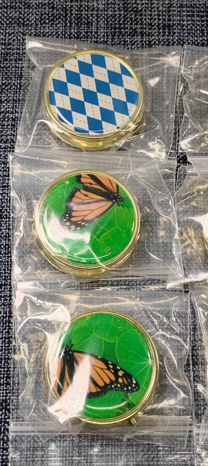 Metal Pill Boxes 2in. Round Golden - 3 Compartment Mix Style Lot of 10
