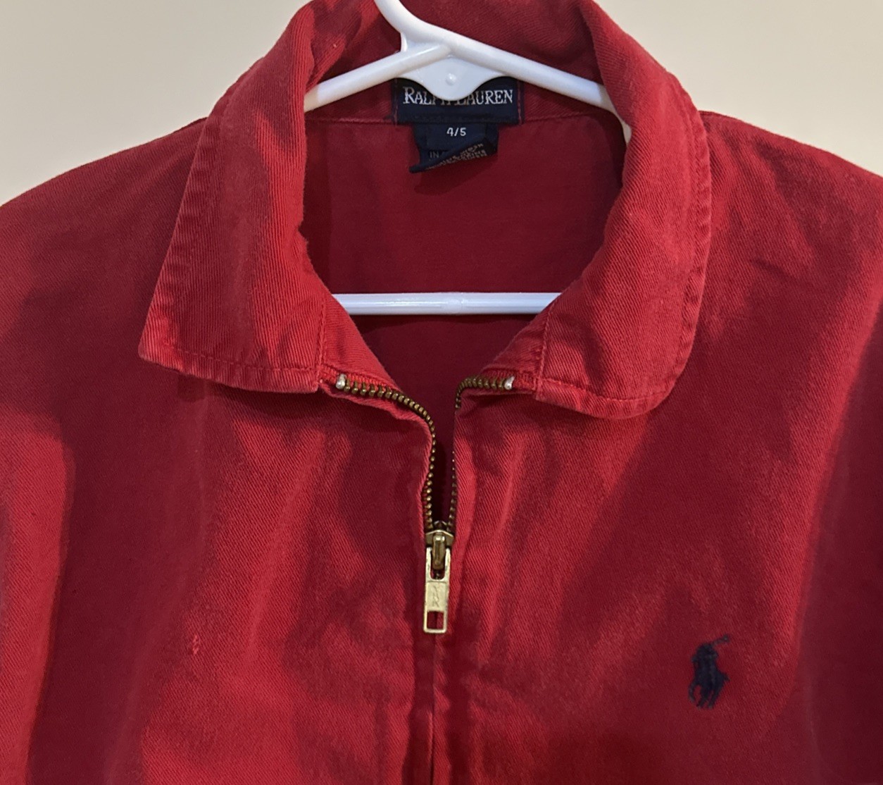 как выглядит POLO RALPH LAUREN RED ZIP FRONT COLLARED COTTON JACKET, Kids Sz 4/5 TWO POCKETS фото