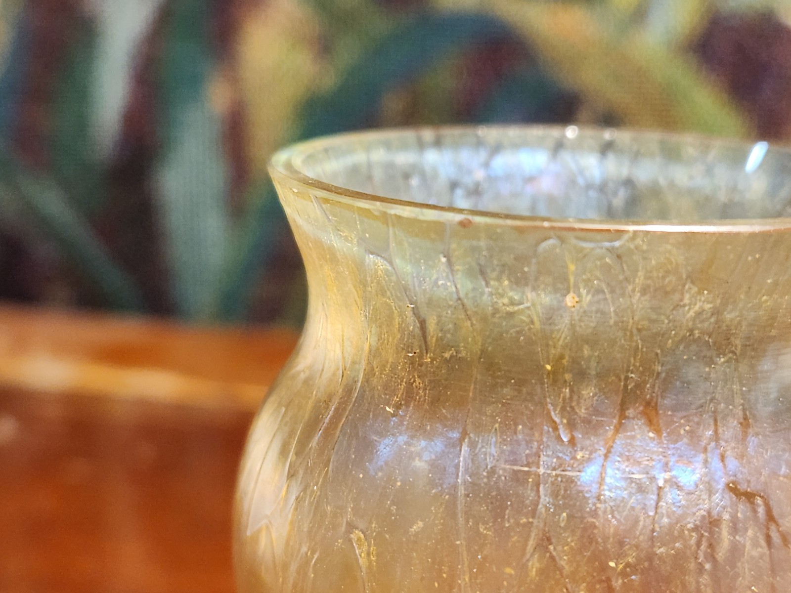 как выглядит Loetz Austria Candia Papillon Gold Art Nouveau Blown Glass Mini Cabinet Vase фото
