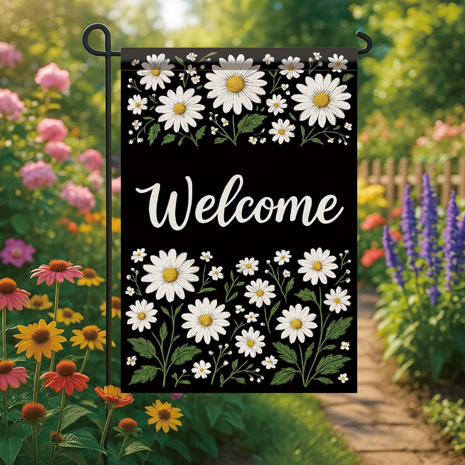 Starlit Patio Spring Summer Welcome Garden Flag Daisy Floral Yard Banner 12 x 18