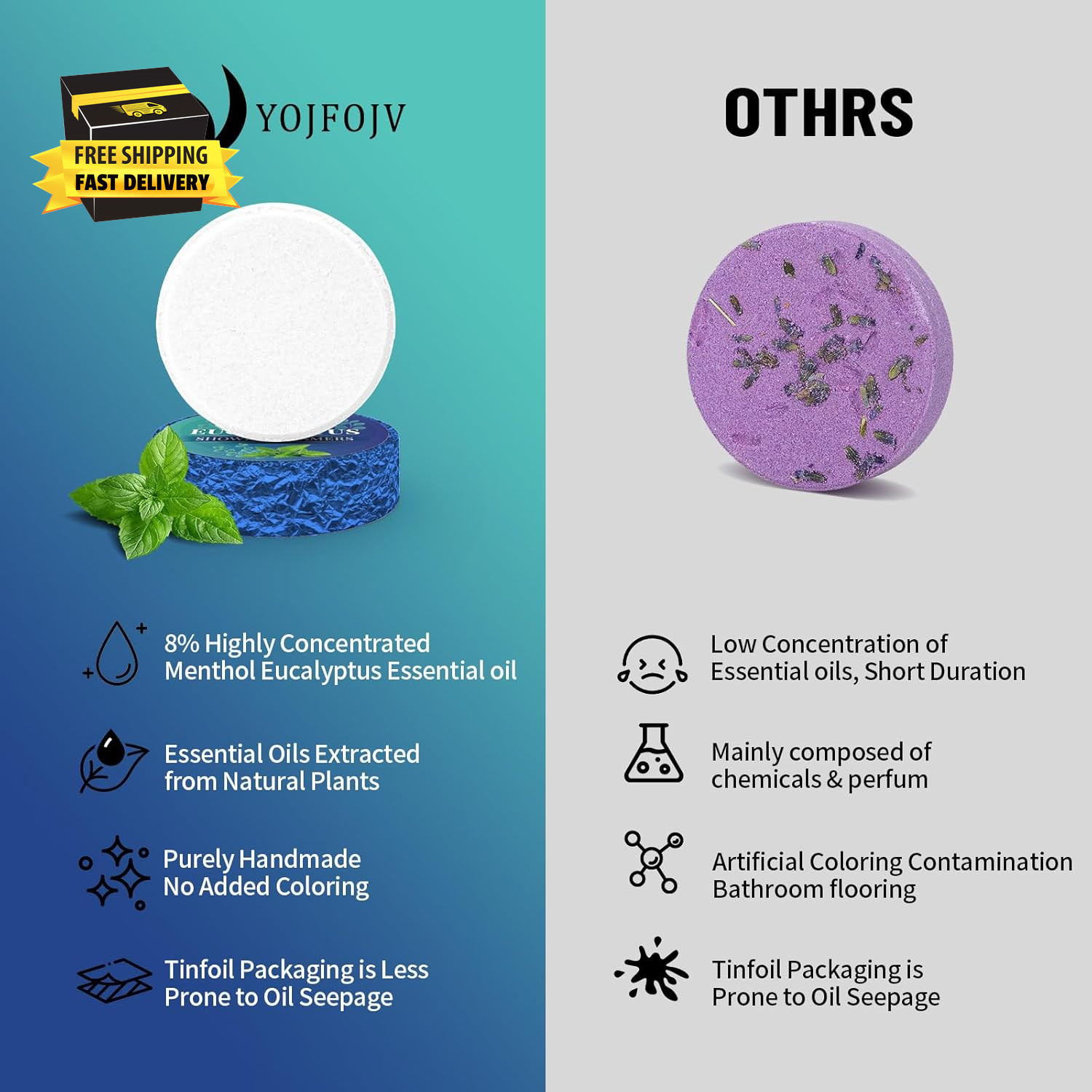 Shower Steamers Aromatherapy, 6 Pack Shower Bombs Organic with Menthol Eucalyp