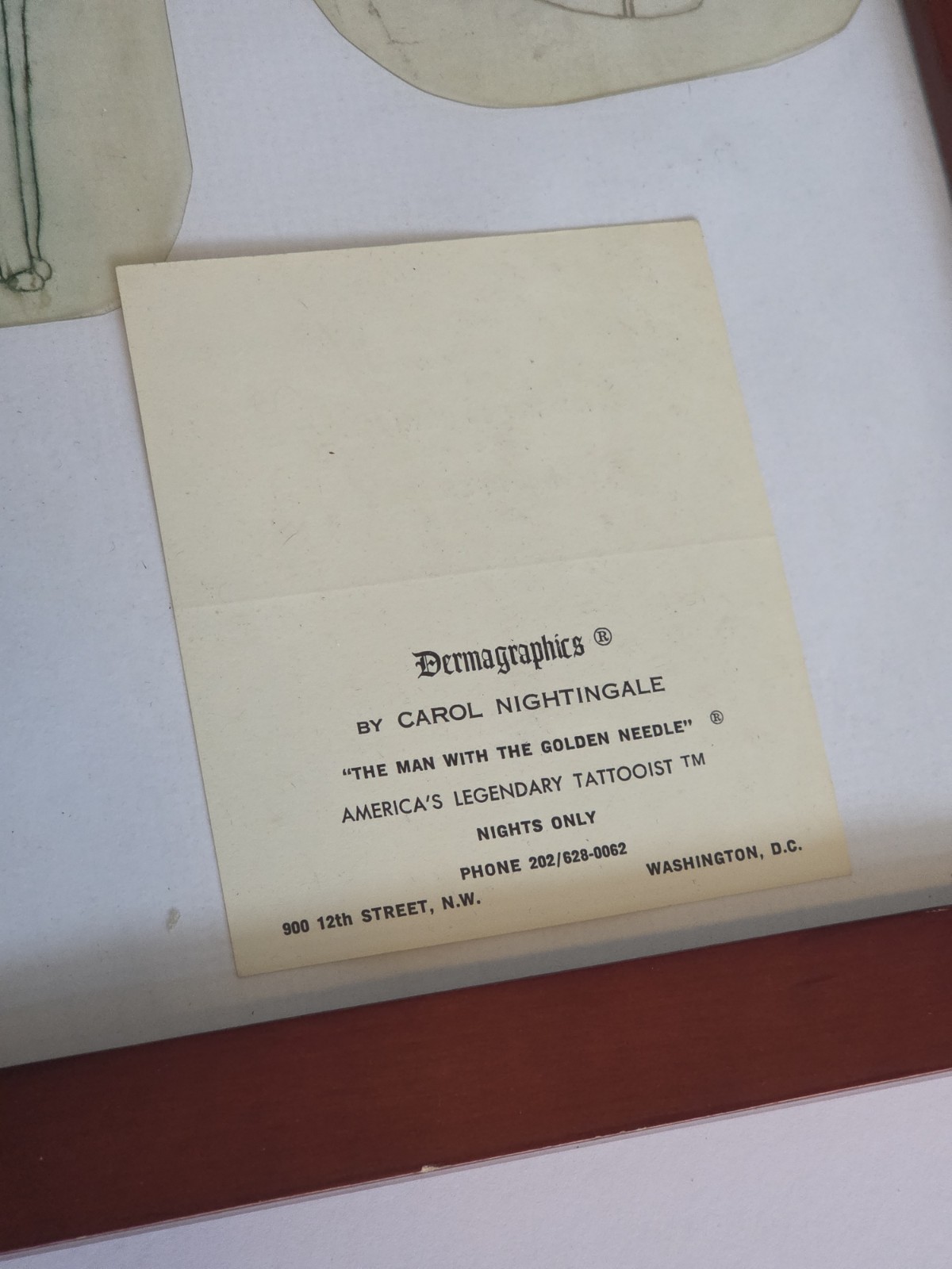 Vintage Tattoo Acetate Stencil Business Card Framed Carol "Smokey" Nightingale
