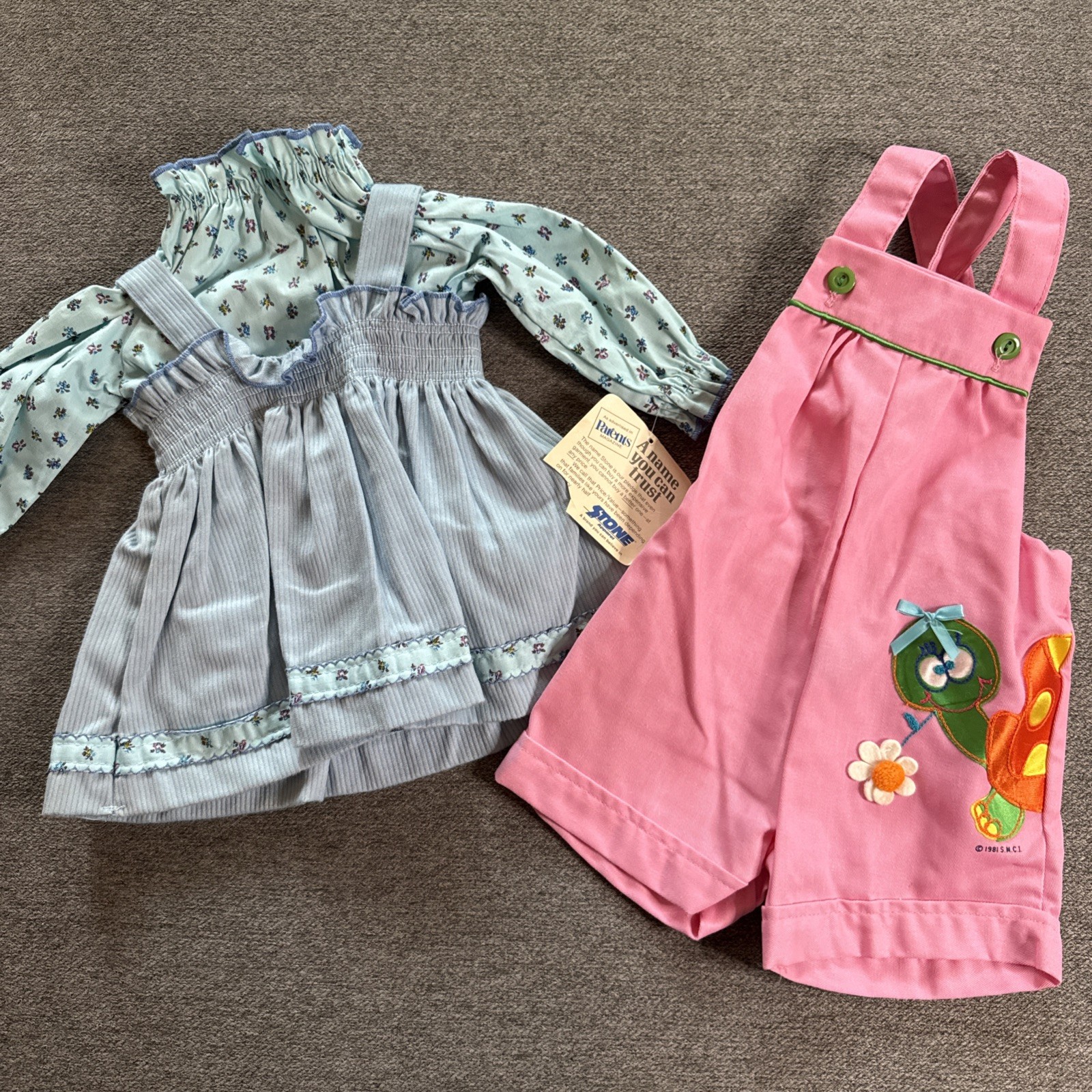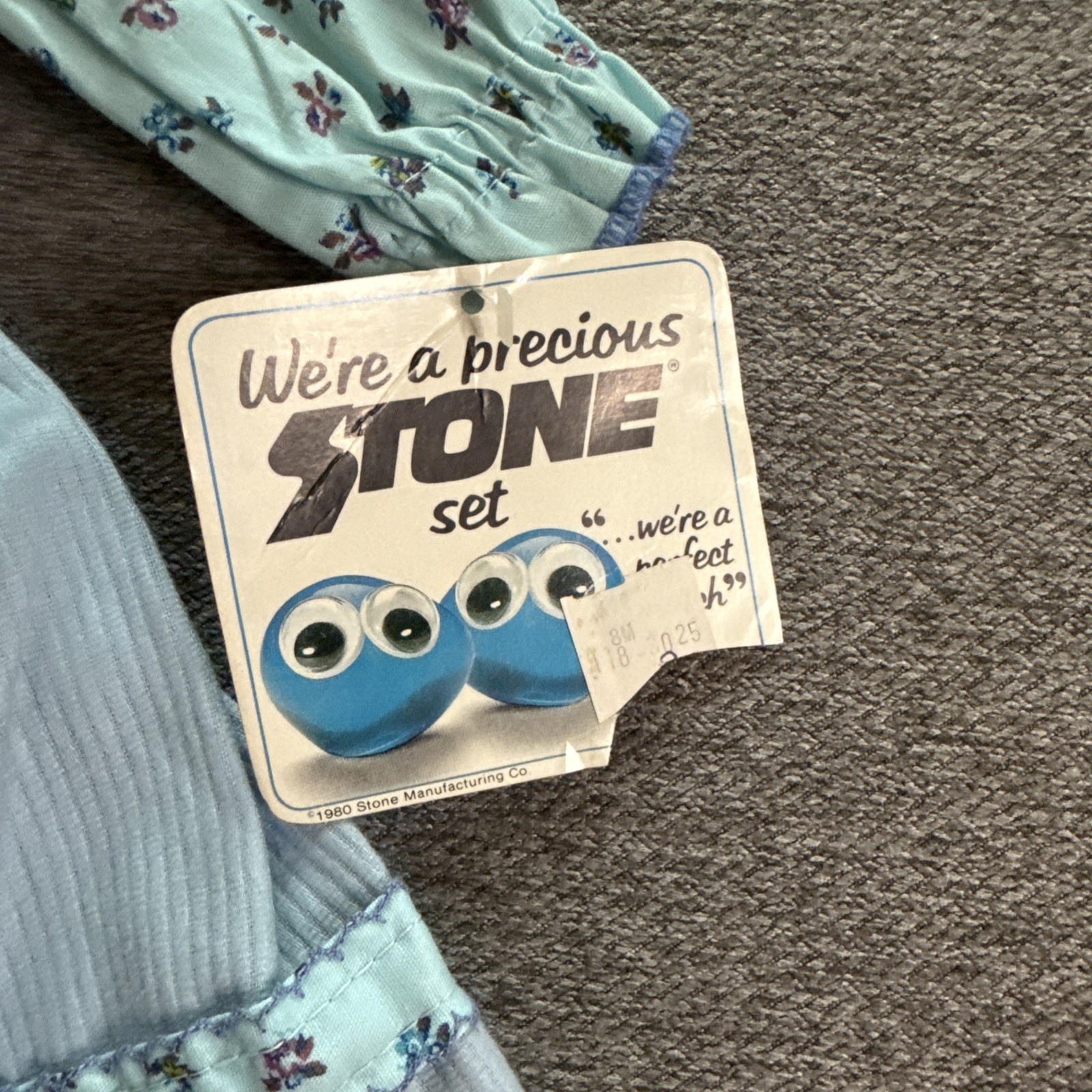 2 Retro 1980s Krazy Knitters Stone Set Dress Baby 12 Months Blue Long Sleeve