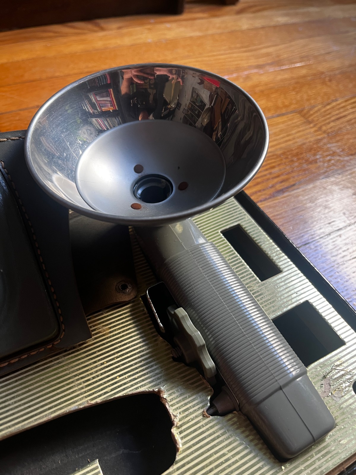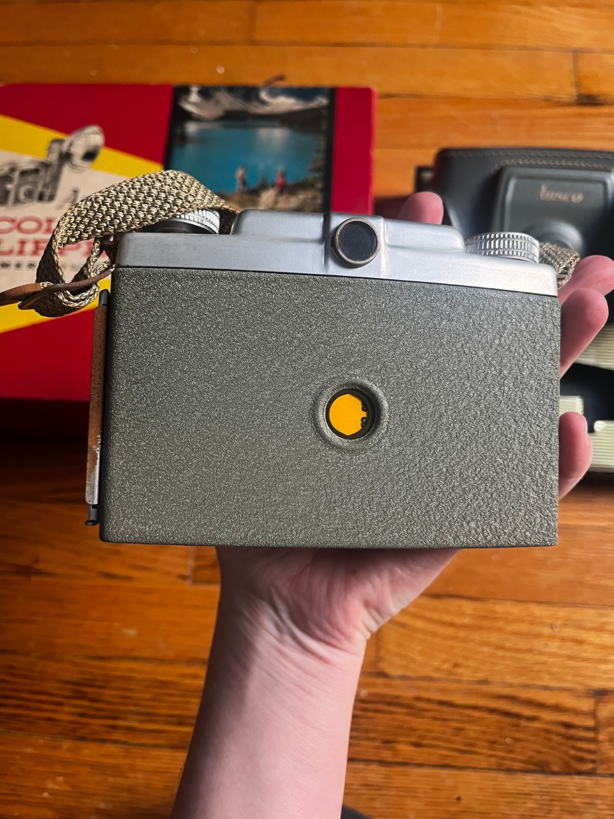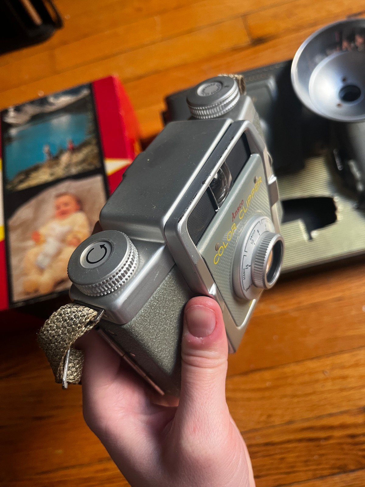 как выглядит Vintage 1950s Ansco Color Clipper camera w/original box, flash, case, and film фото