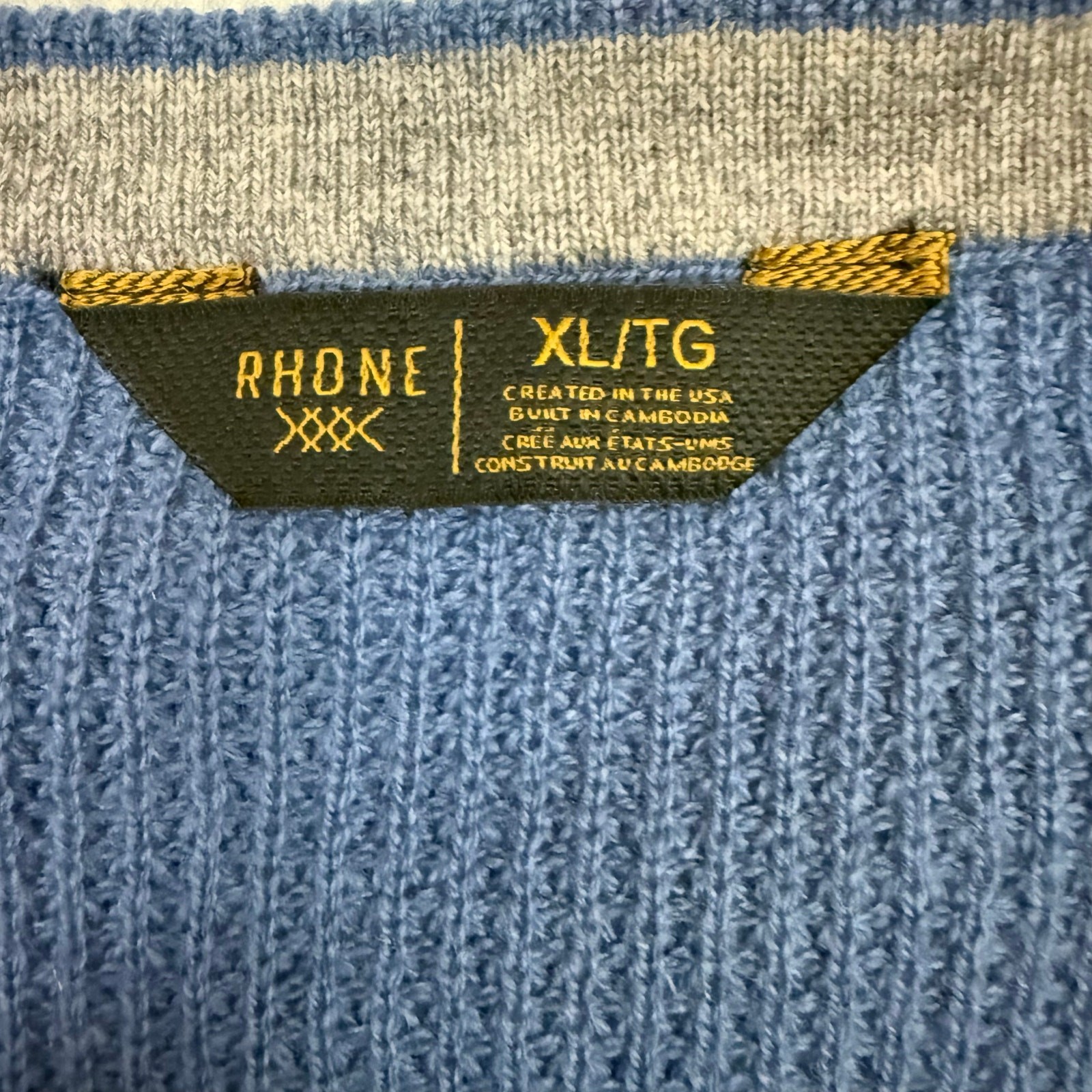 как выглядит Rhone Wool Cashmere Sweater Mens XL Walden Waffle Knit Blue Marle 178 NEW фото