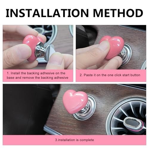 Car Start Button Cover, Heart-Shaped Decorative Engine Start-Stop 1 PC Pink