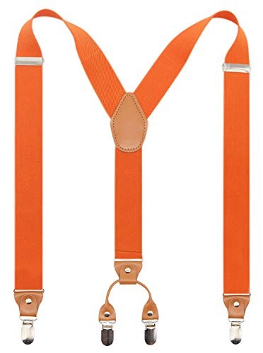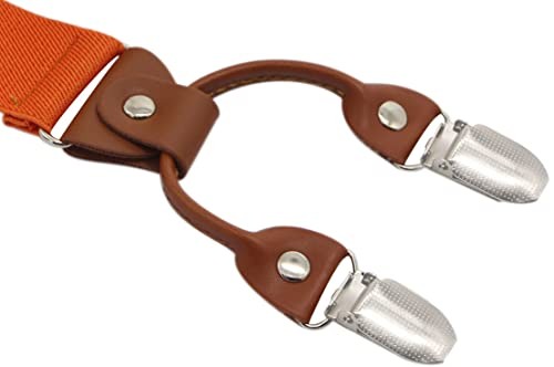 Timiot Men s Y-Back 4 Metal Clip Elastic Wide Suspenders Perfect For Orange