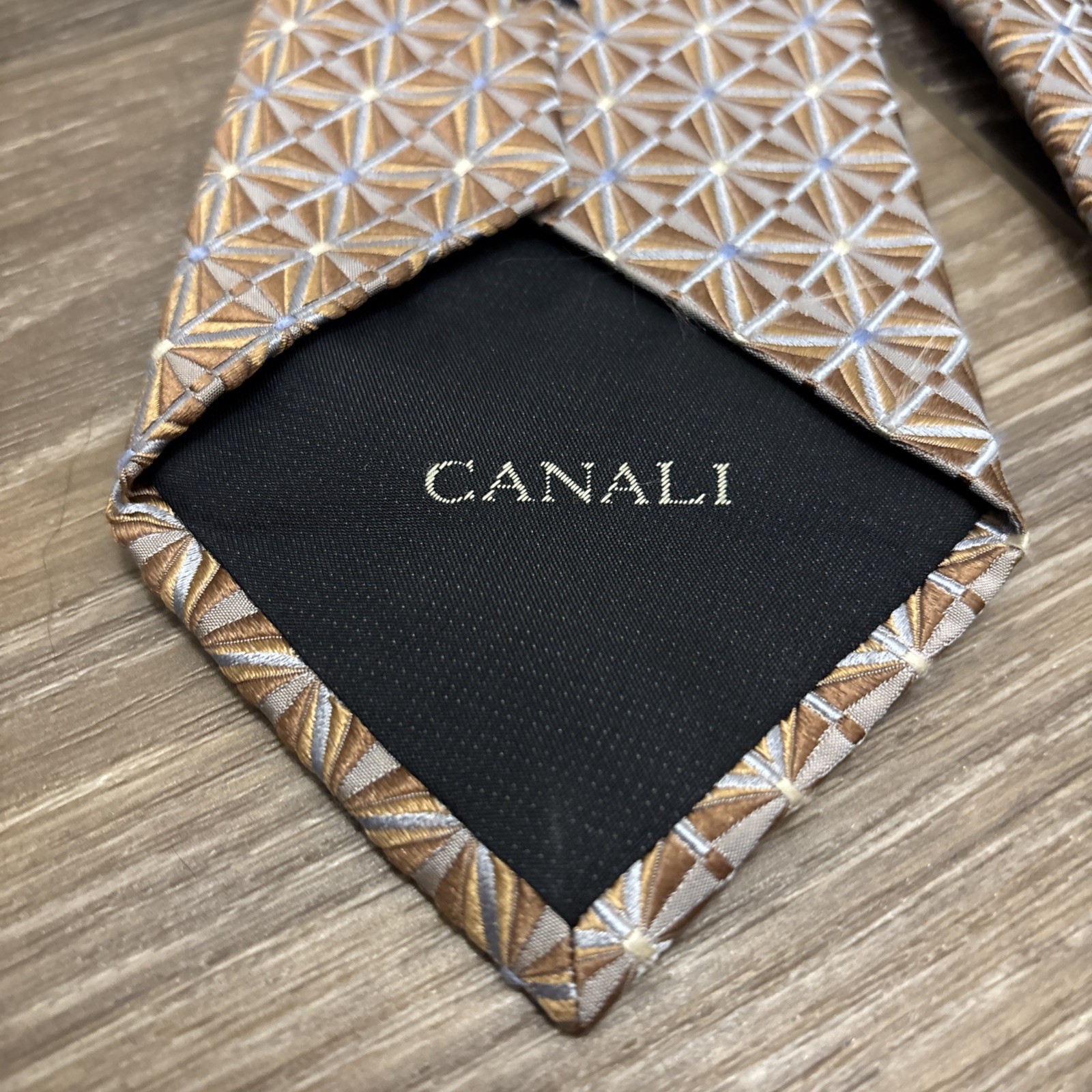 Canali MENS Tie Silk Cotton Blend Geometric Design - Made In Italy 3.75 x 59