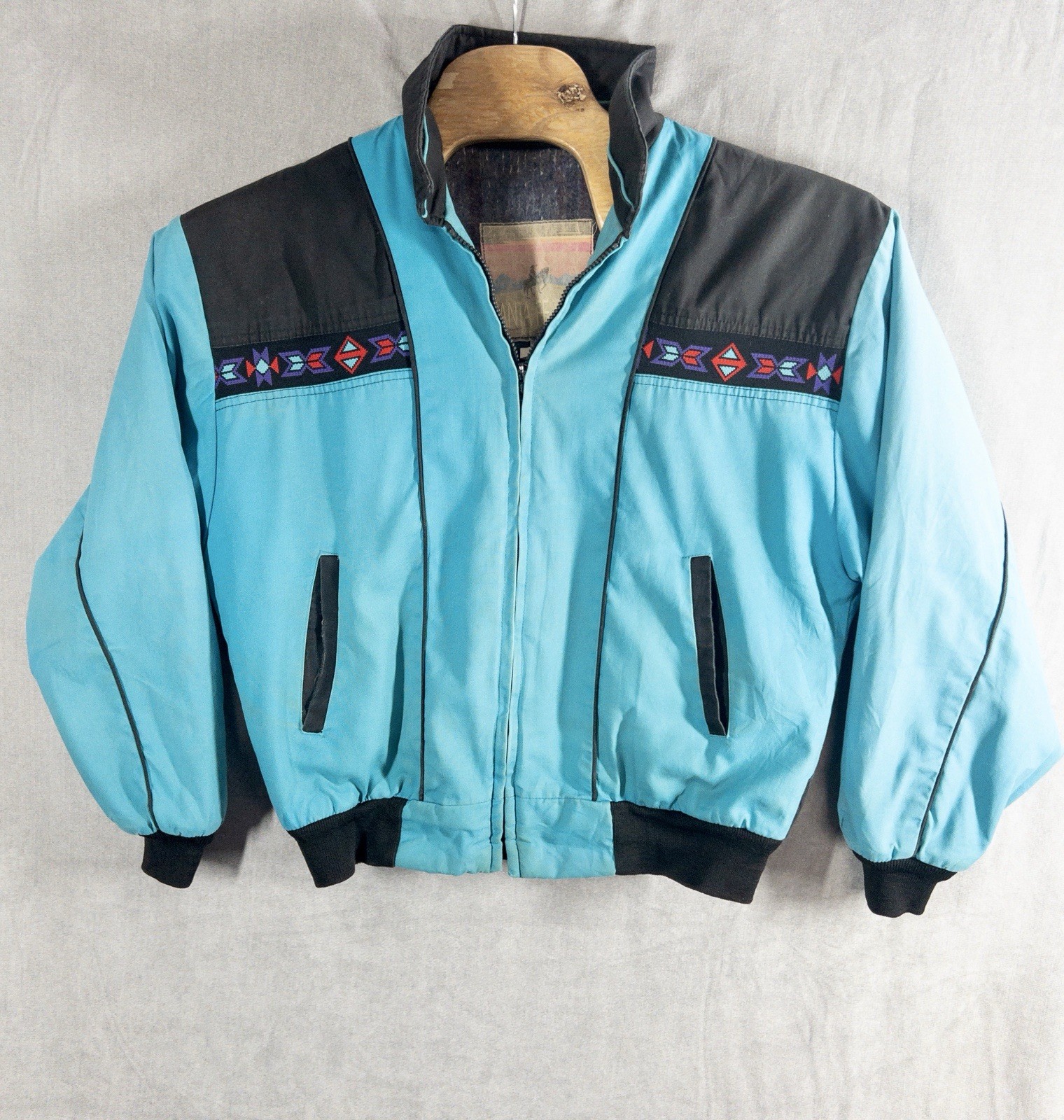 VTG USA Made Santa Fe Trail Western Aztec Navajo Blanket Lined Jacket Size L