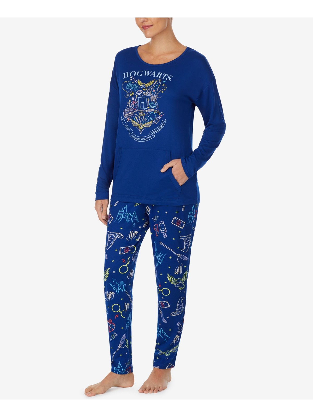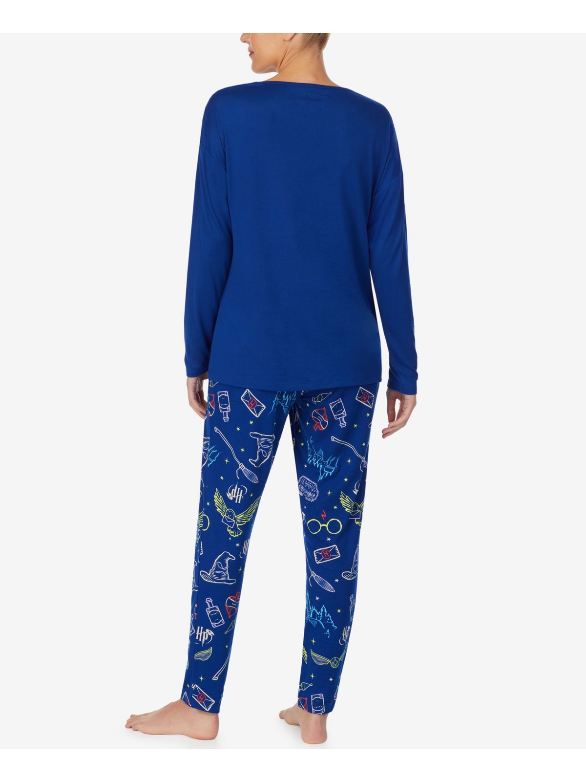 как выглядит HYBRID APPAREL Womens Blue Top Elastic Band Long Sleeve Skinny Pants Pajamas M фото