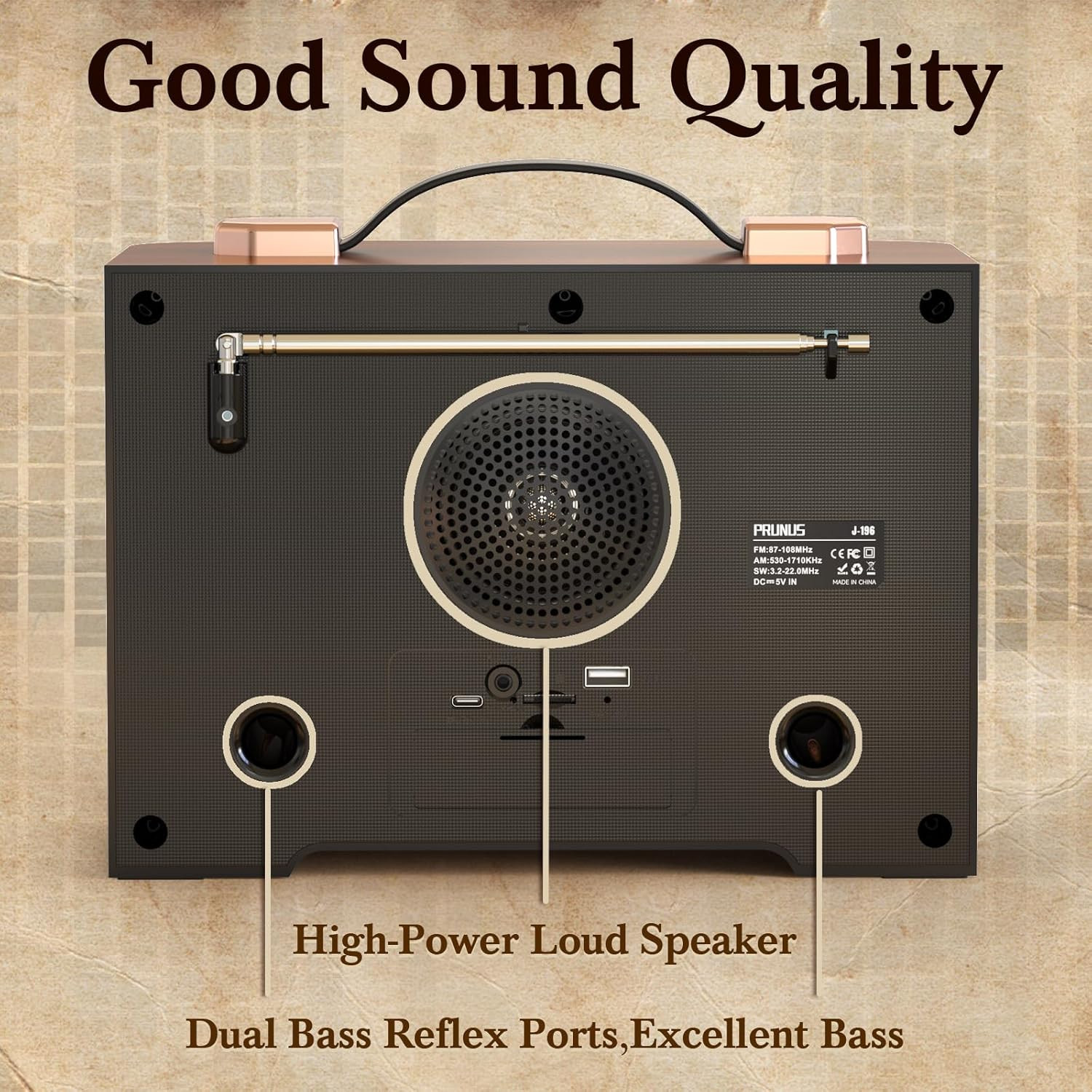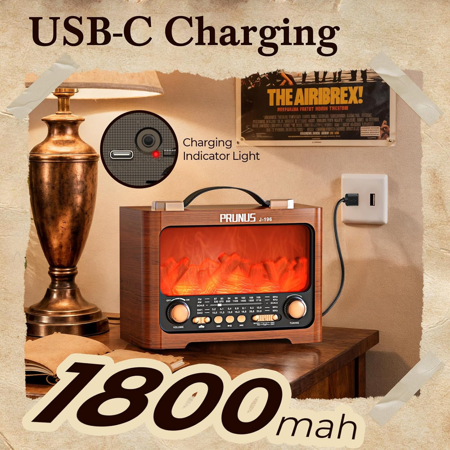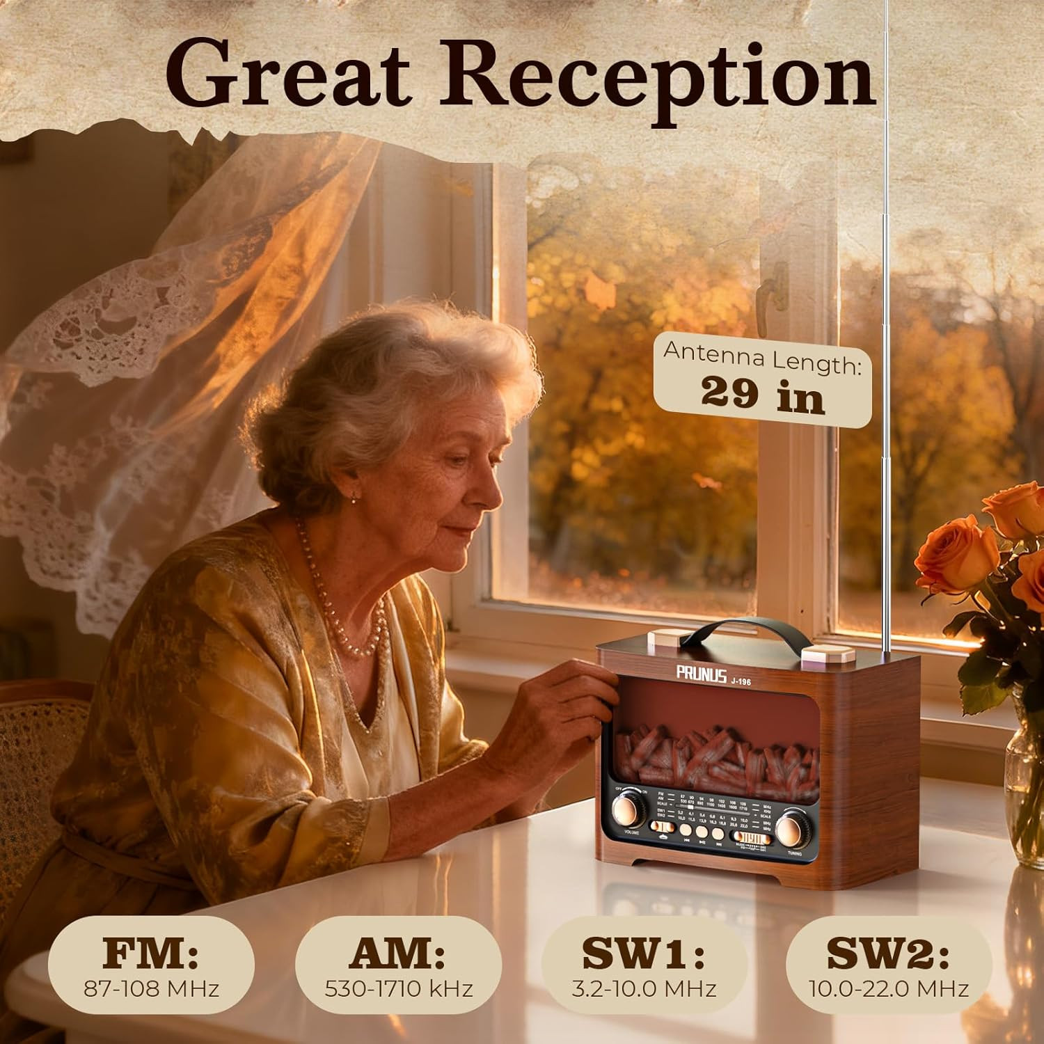 J-196 AM FM Radio with Best Reception for Home, Bluetooth, Flame LED, TF/USB Pla