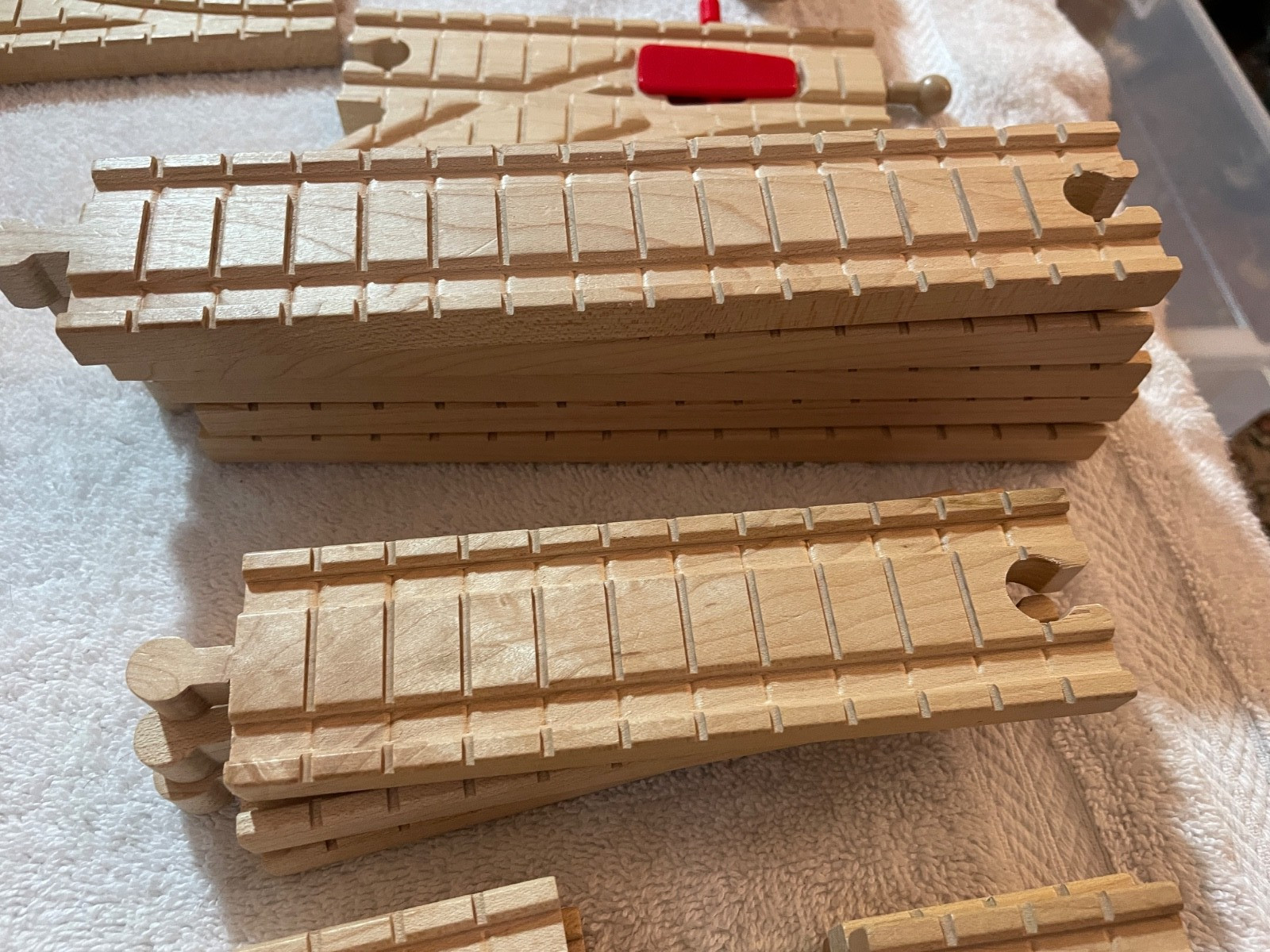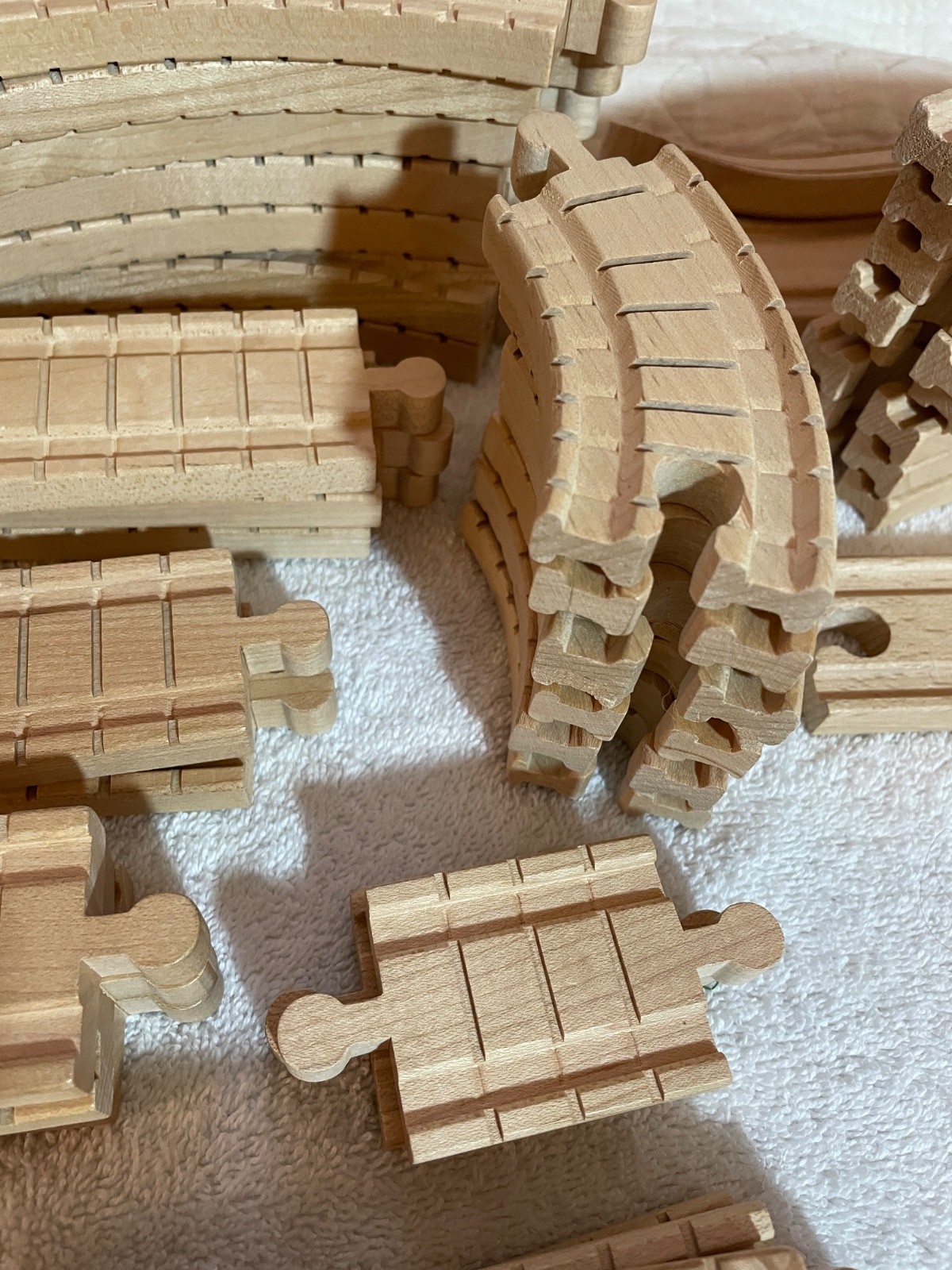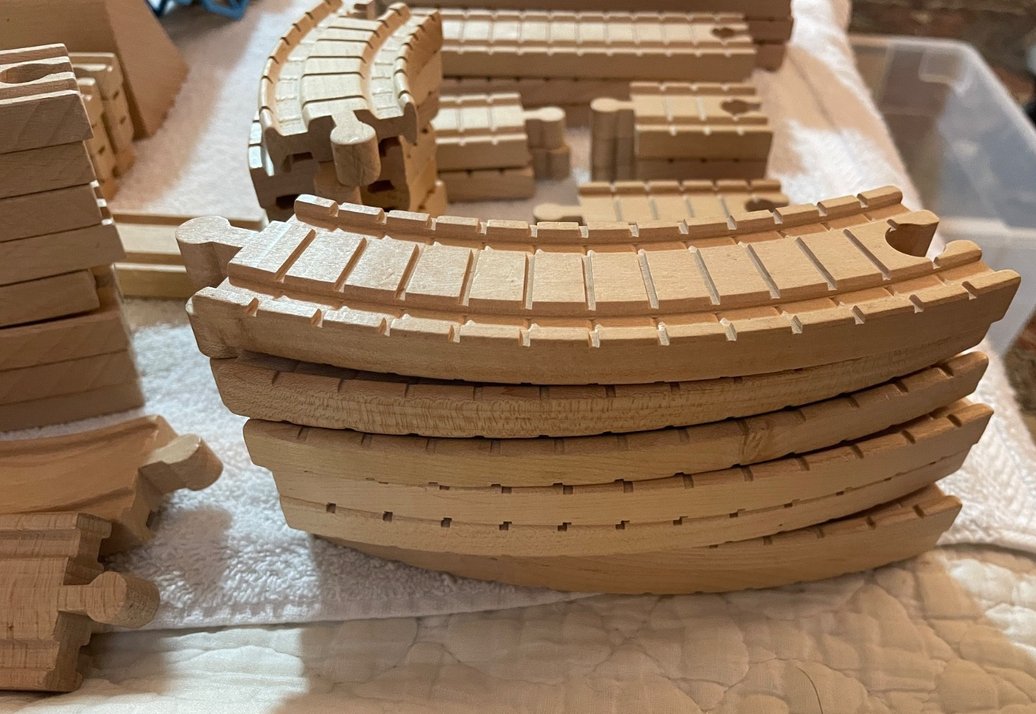 Lot of 57 pieces of Vintage Brio and/or Thomas The Train Wooden Railway Tracks