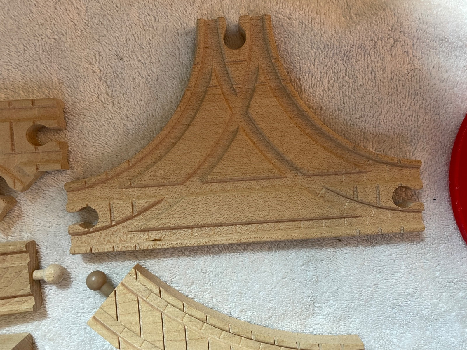как выглядит Lot of 57 pieces of Vintage Brio and/or Thomas The Train Wooden Railway Tracks фото