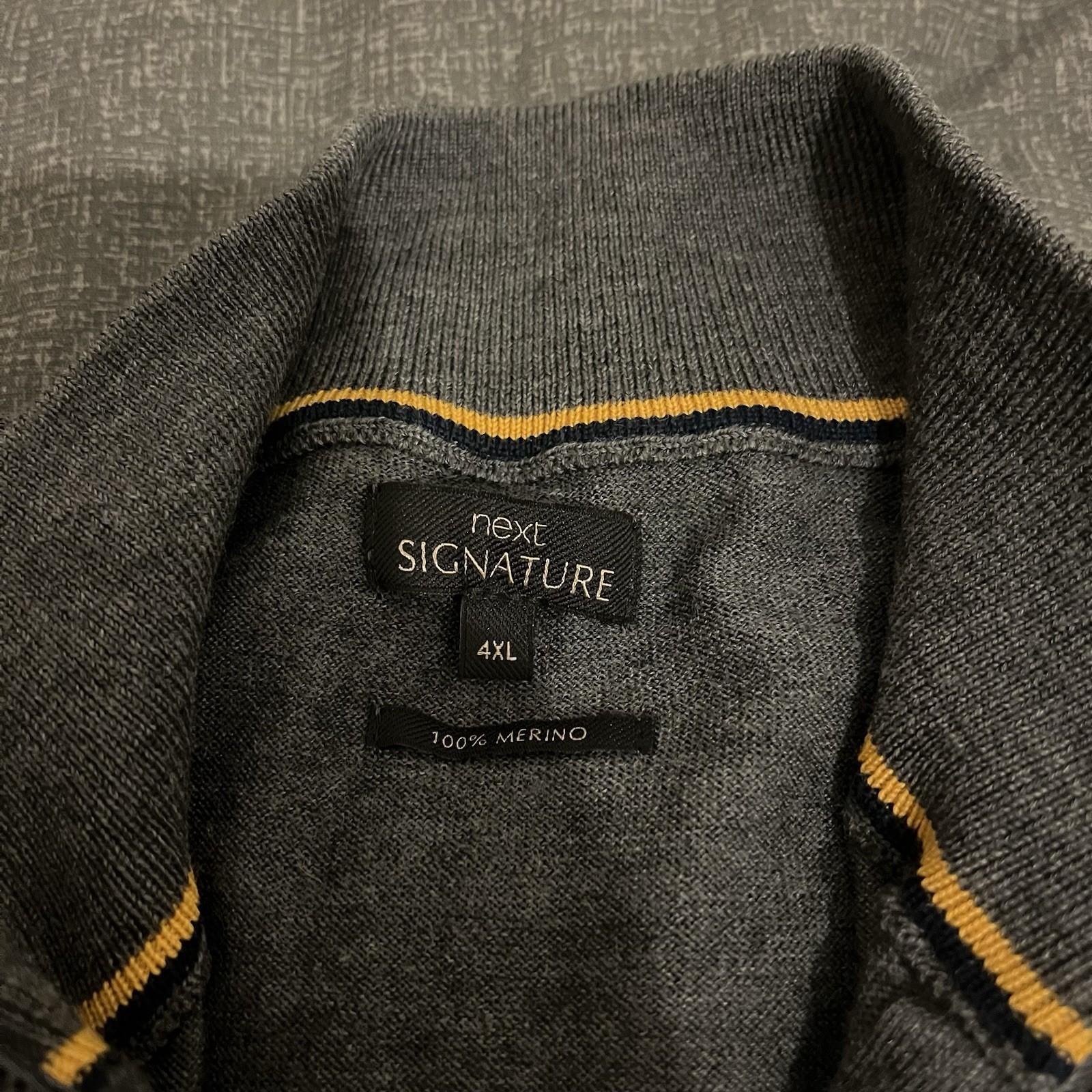 NEXT Jumper 100 Merino Wool Mens Size 4XL Grey 1/4 Zip Knitted Sweater