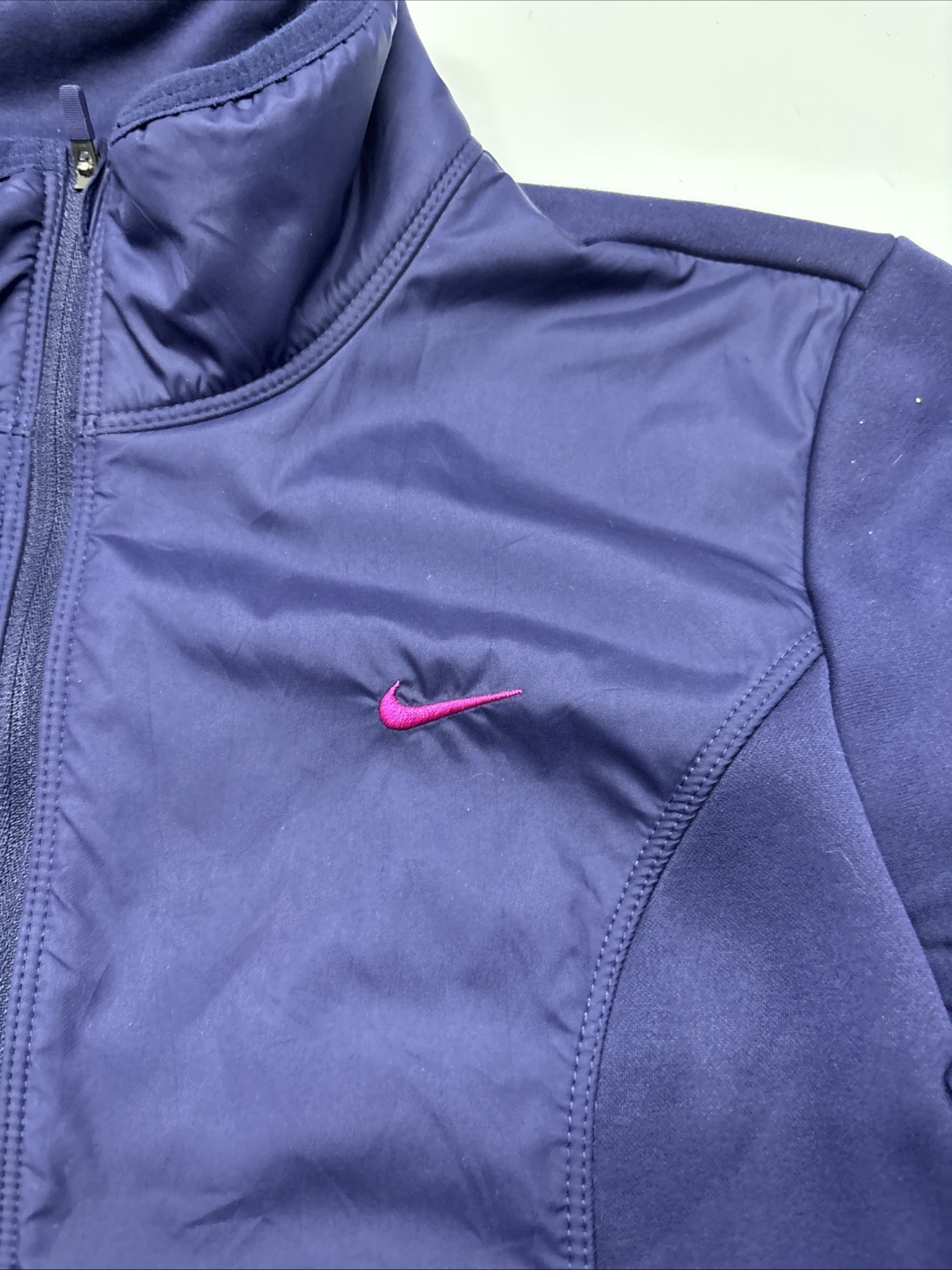 NIKE THERMA-FIT Size M Womens Full Zip Pocket Fleece Lined Jacket Purple W/Pink