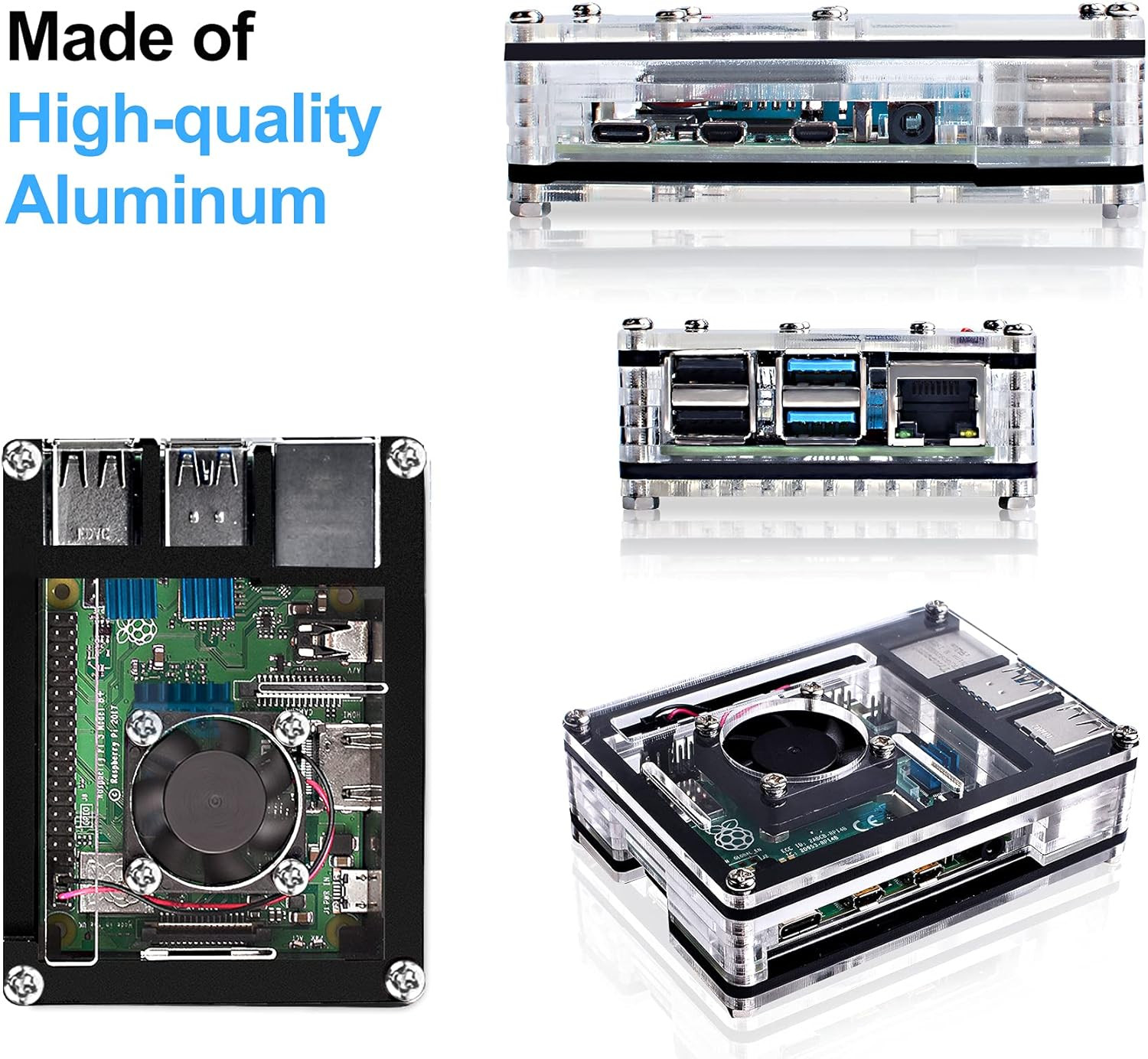 Raspberry Pi 4 Case with Fan, 5V 3A Power Supply 4 Aluminum Heatsinks