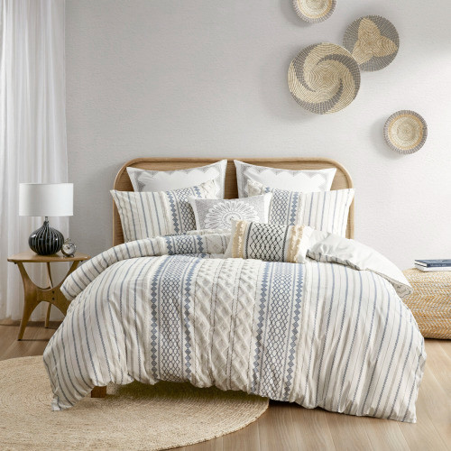 как выглядит King Cal King Cotton Printed Duvet Cover Set With Chenille фото