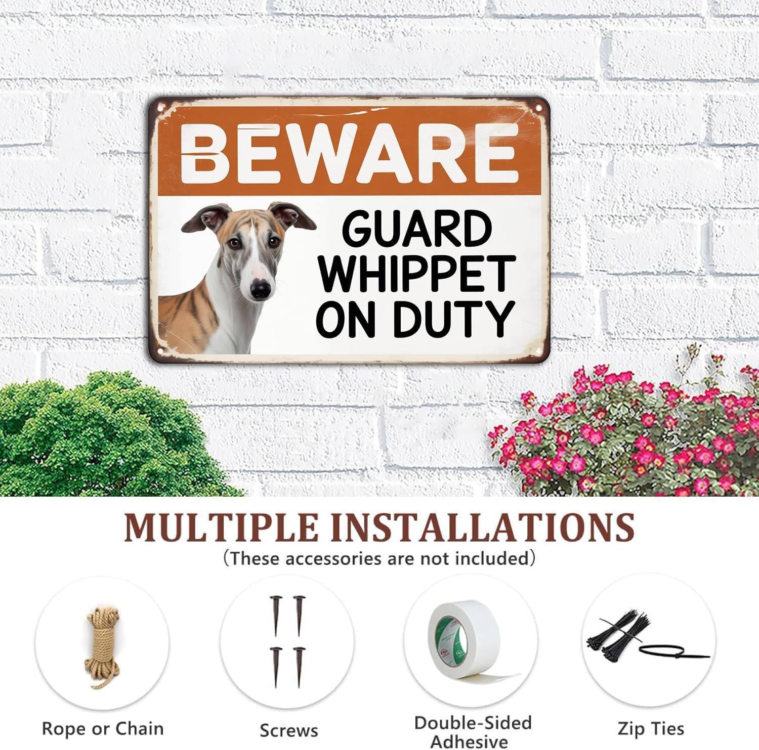 Beware Guard Whippet on Duty Tin Metal Signs Home D cor Vintage Funny Dog Print