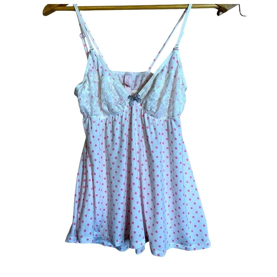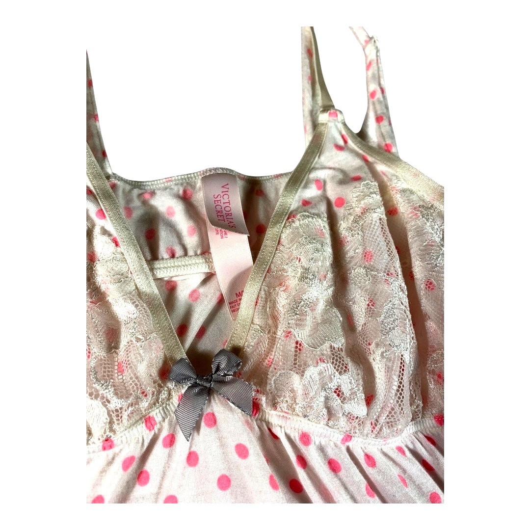 как выглядит Victorias Secret Pink Polk-a-Dot Camisole and Shorts Pajama Set Lace Trim Med фото