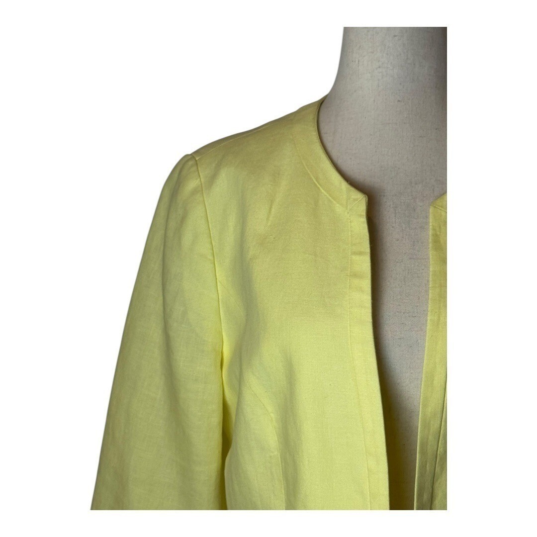 как выглядит Talbots Blazer Women 10 Yellow Linen Open Front Jacket Lagenlook Preppy Career фото