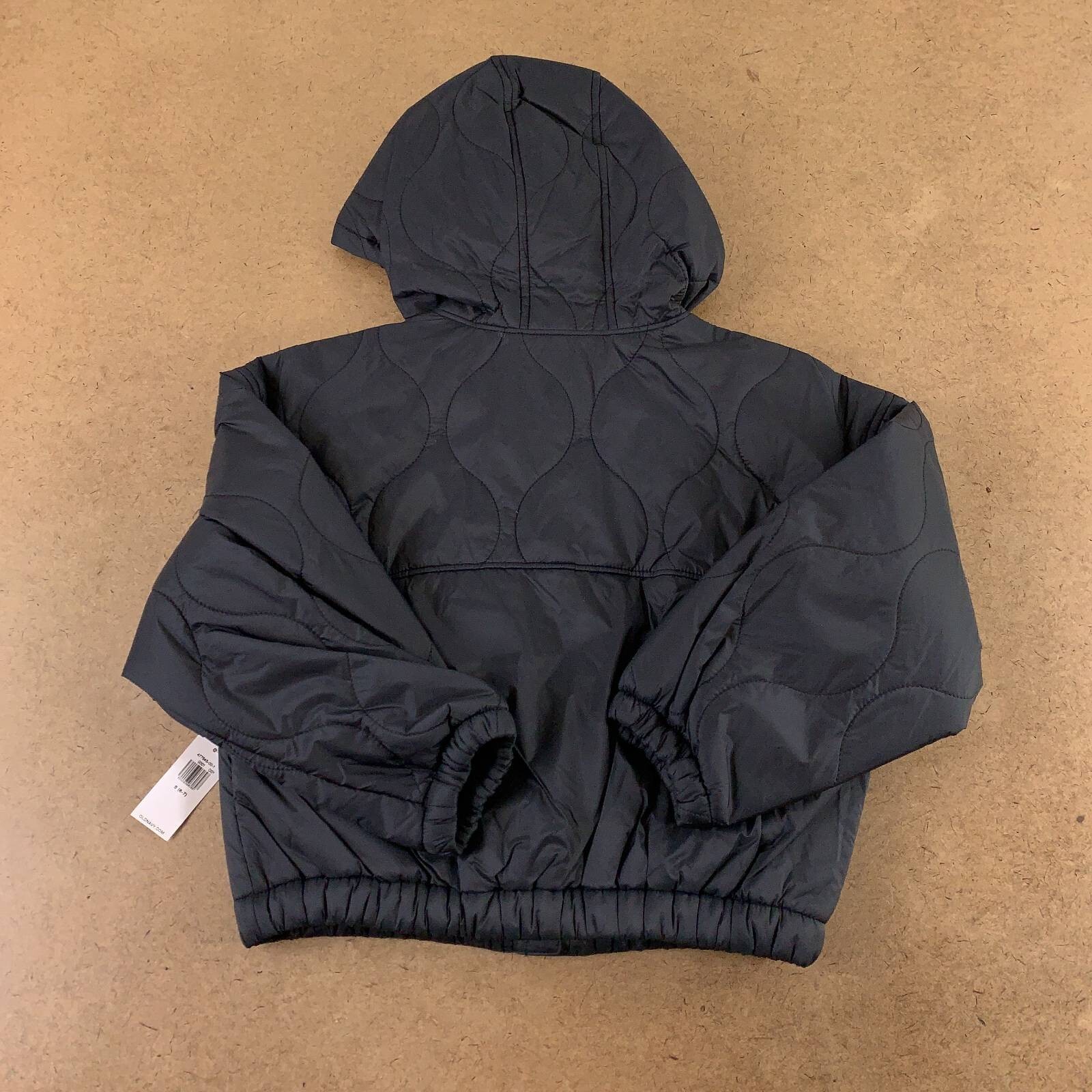 Old Navy Girls Quilted Jacket Solid Black Water Resistant Hooded S 6/7 New