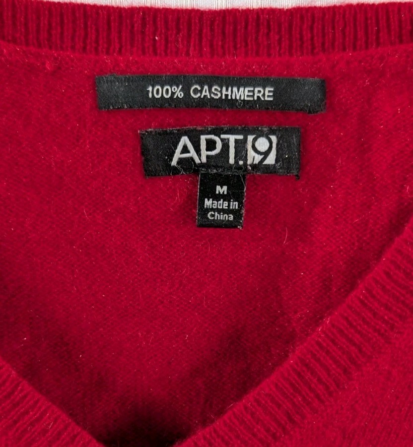 Apt. 9 100 Cashmere Red V-Neck Sweater Womans Size Medium