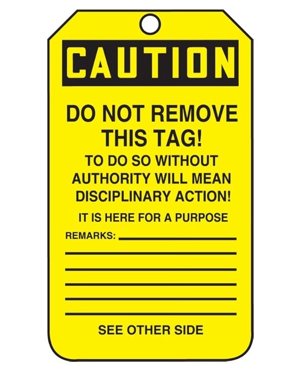 как выглядит Caution Out of Service  RP-Plastic Safety Tag meet OSHA 1910.145 Pack of 5 фото