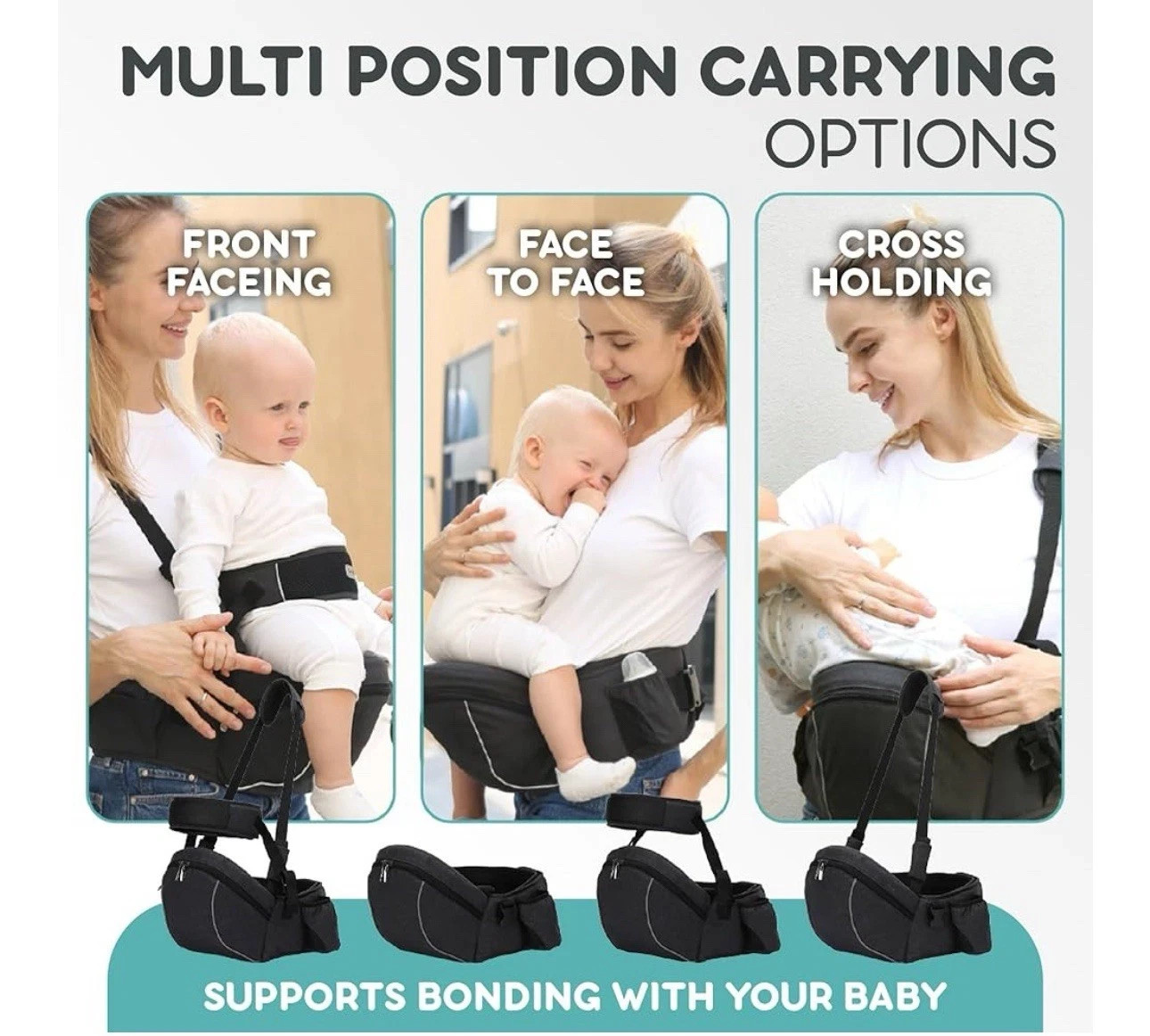 GABESY Baby Hip Seat Carrier/Waist Adjustable Strap Pocket Soft w/Storage - Grey