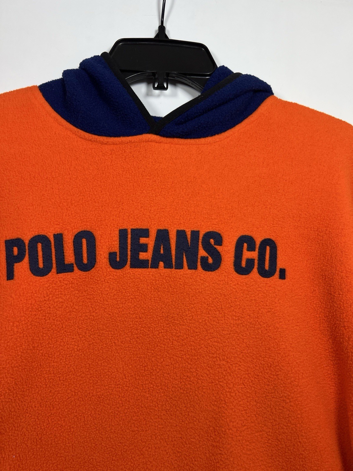 как выглядит Vtg Ralph Lauren Polo Jeans Co Fleece Hoodie Orange Blue Hood 90s Mens L фото