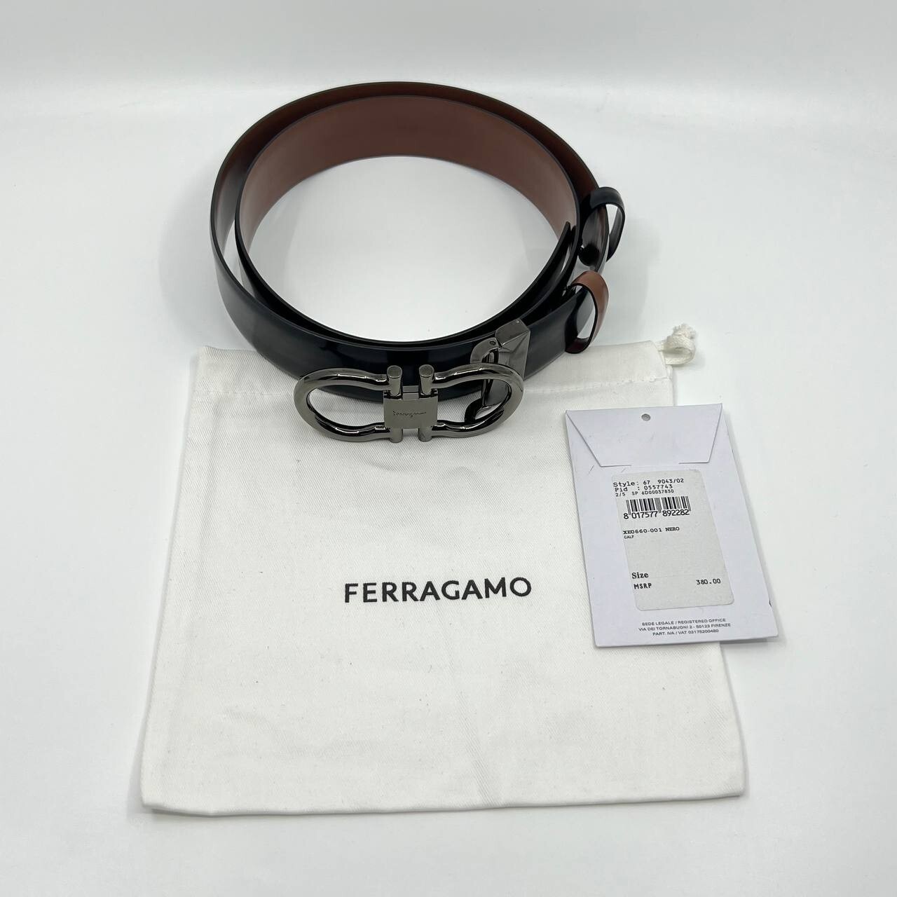 Authentic SALVATORE FERRAGAMO men's patent leather belt black brown reversible