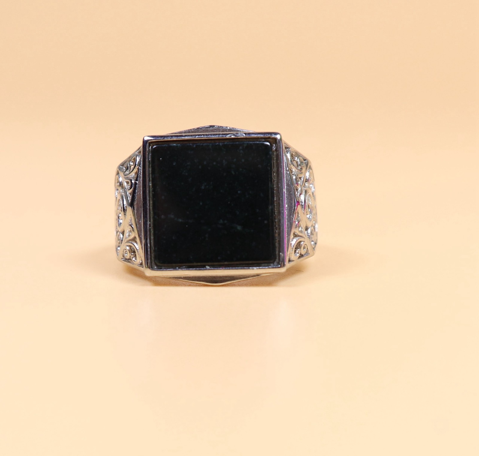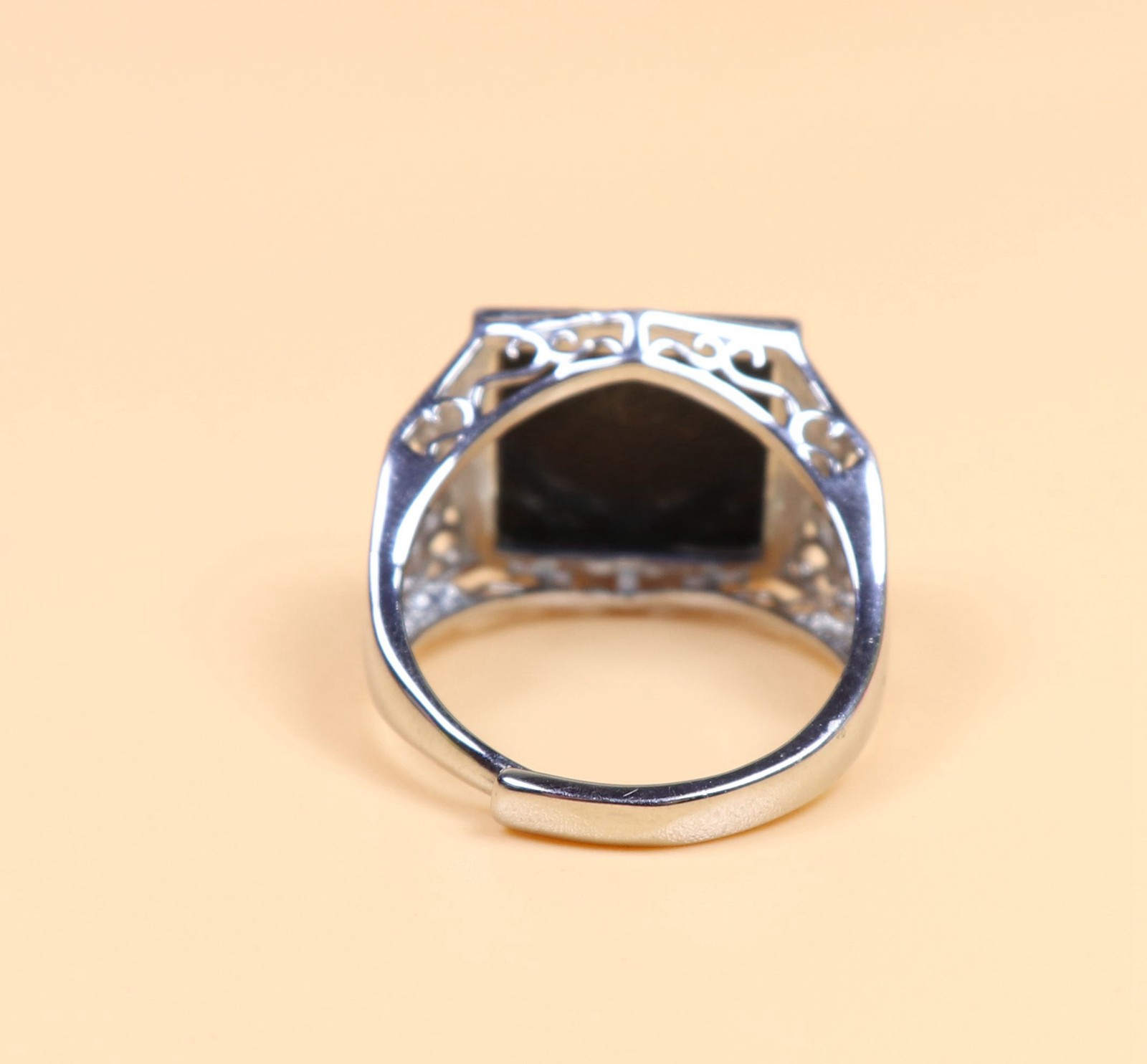 как выглядит 925 Silver Certified Black Natural A Jadeite ring Adjustable Diameter 25966a фото