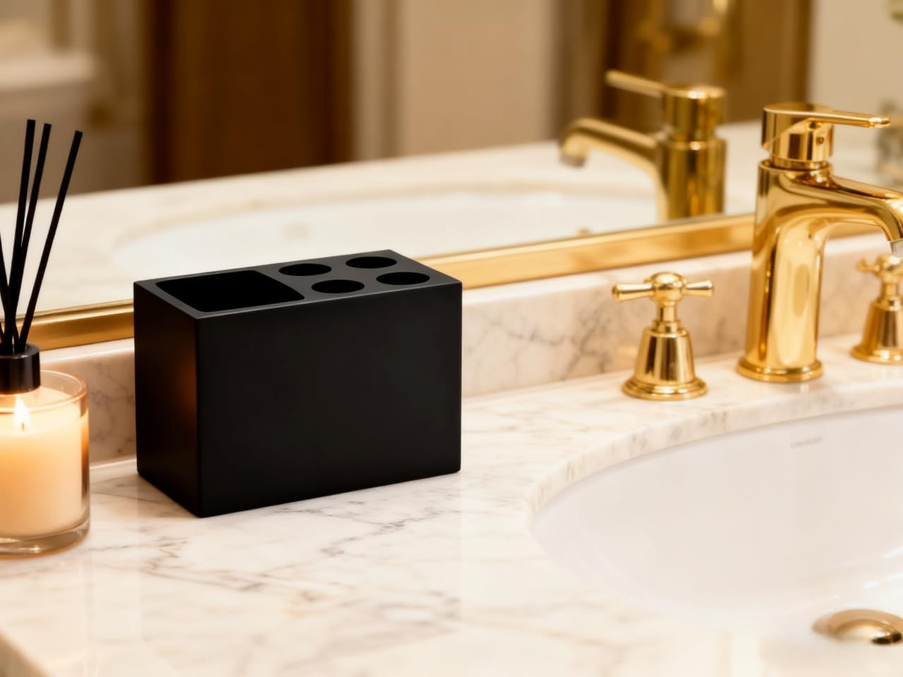 Matte Black Resin Toothbrush Holder 5 Slots Bathroom Organizer Stand