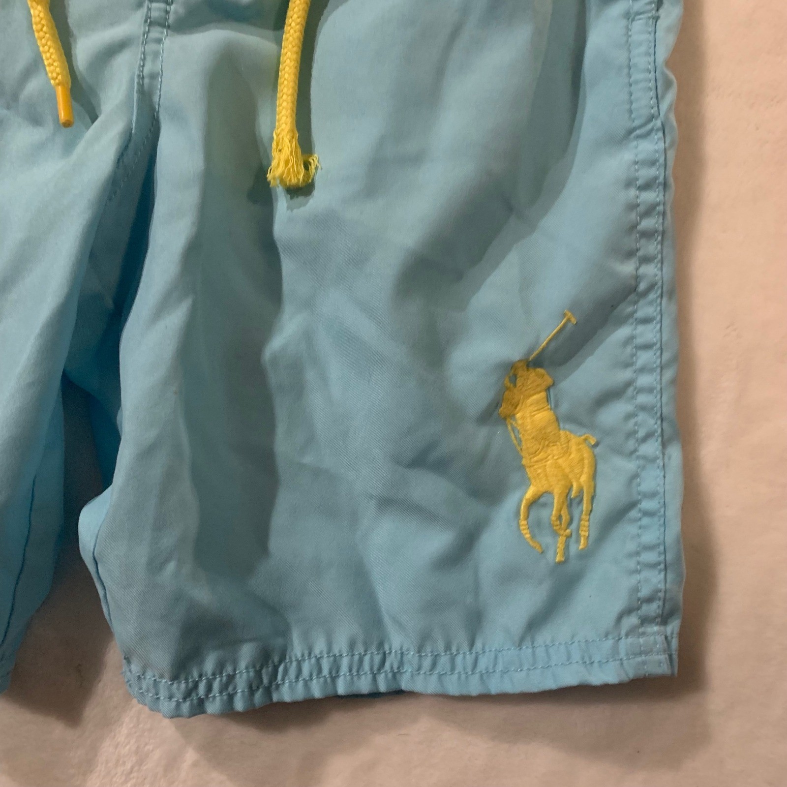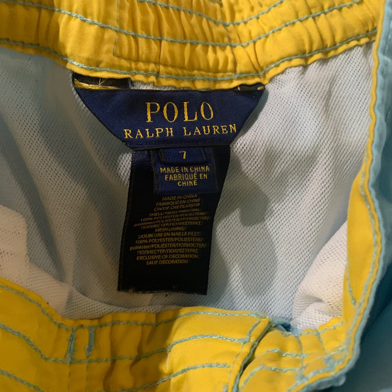 как выглядит Kids Polo Ralph Lauren Swim Trunks Blue Yellow Pony Logo Size 7 фото
