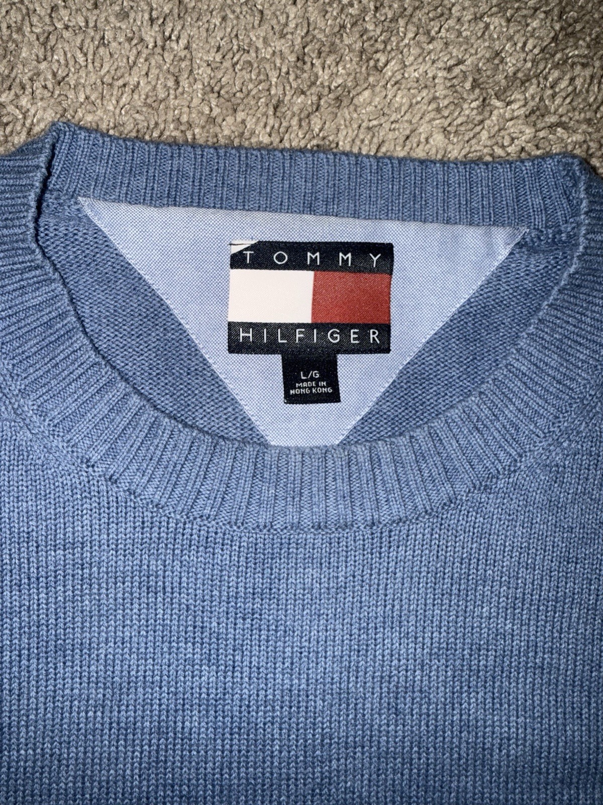 как выглядит Sweater Tommy Hilfiger Mens Crew Neck 100 Cotton Logo Light Blue Pullover EUC фото