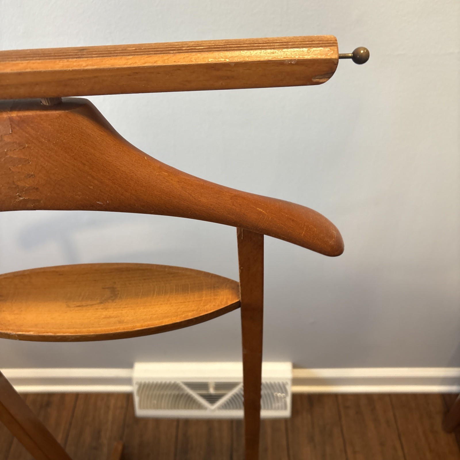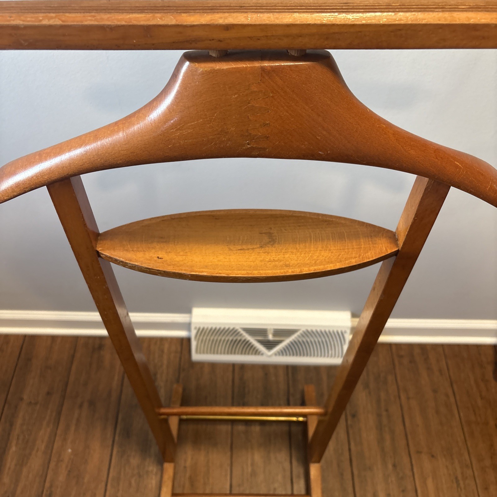 как выглядит Fratelli Reguitti Brevettato Italian Wood Rolling Valet Stand Rack 1950s Vintage фото