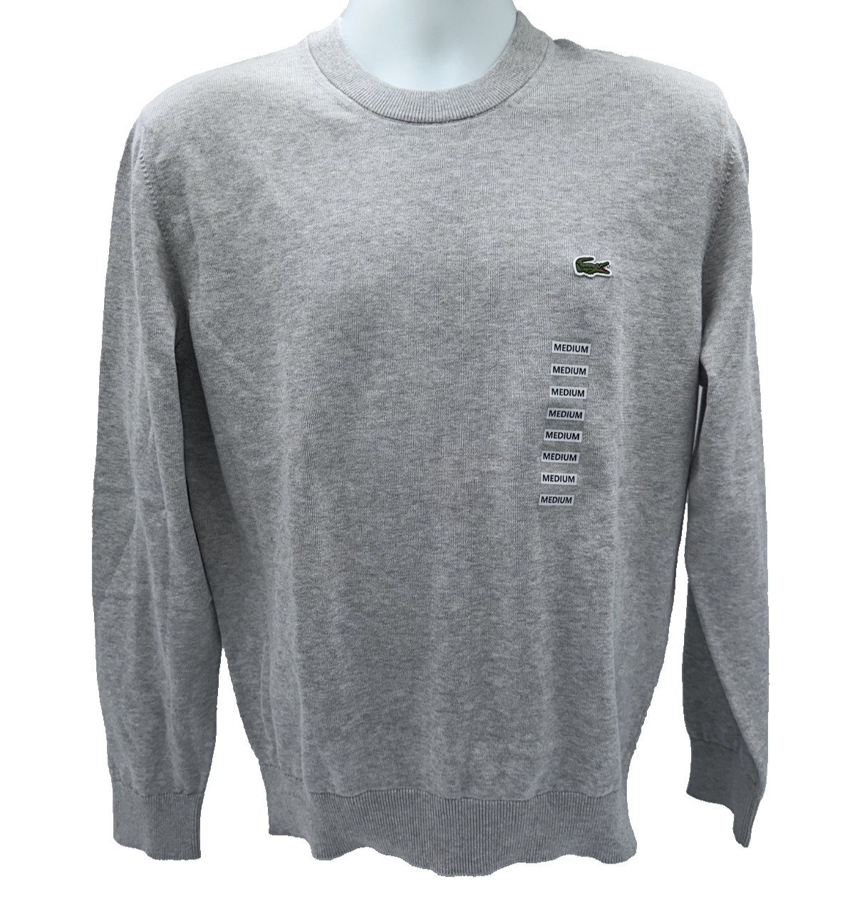125 Lacoste Men's Crew Neck Cotton Sweater - Medium - Grey Chine -New With Tag