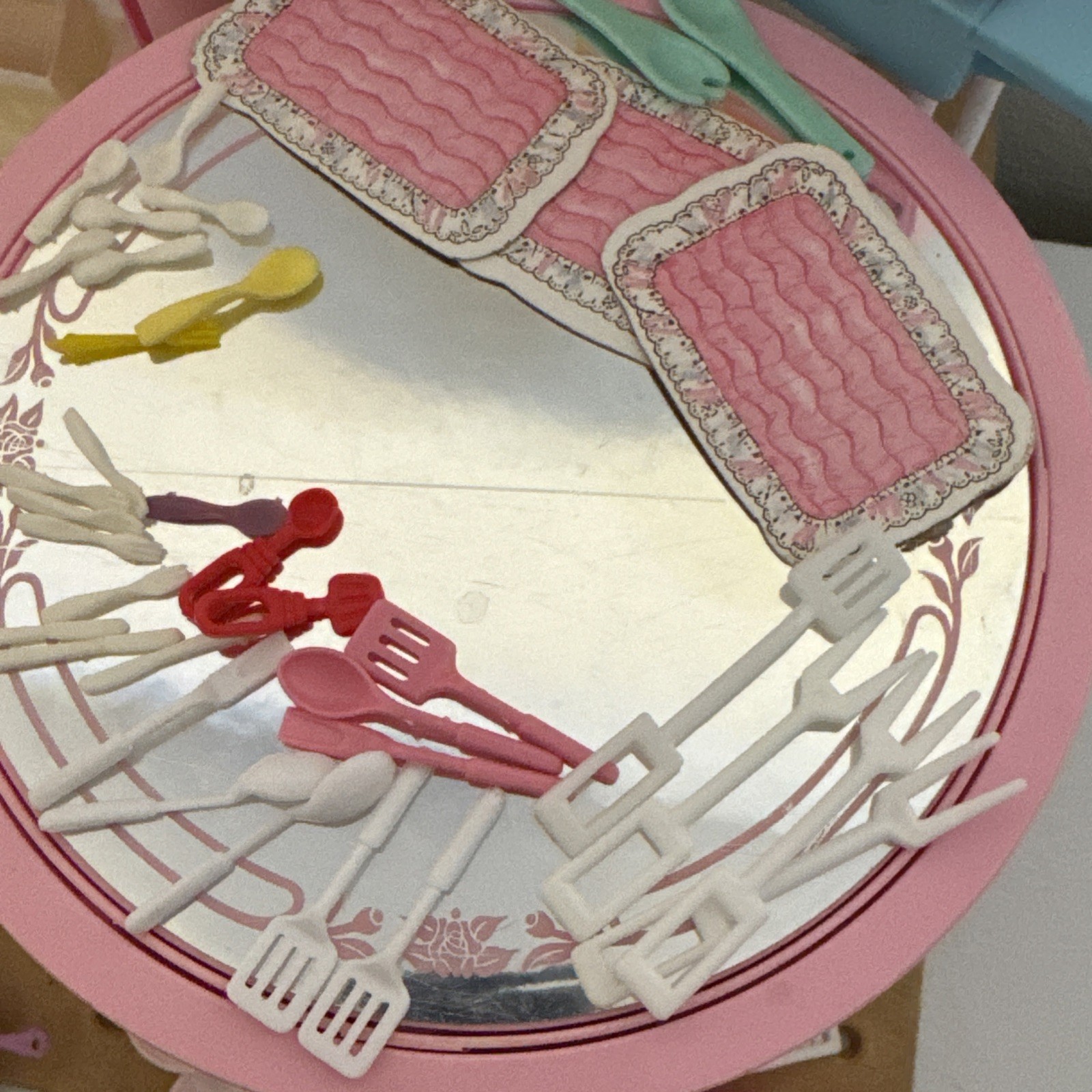 Giant Lot of Barbie Kitchen Food Dishes Pots Wash Watch Dishwasher Wind Ups