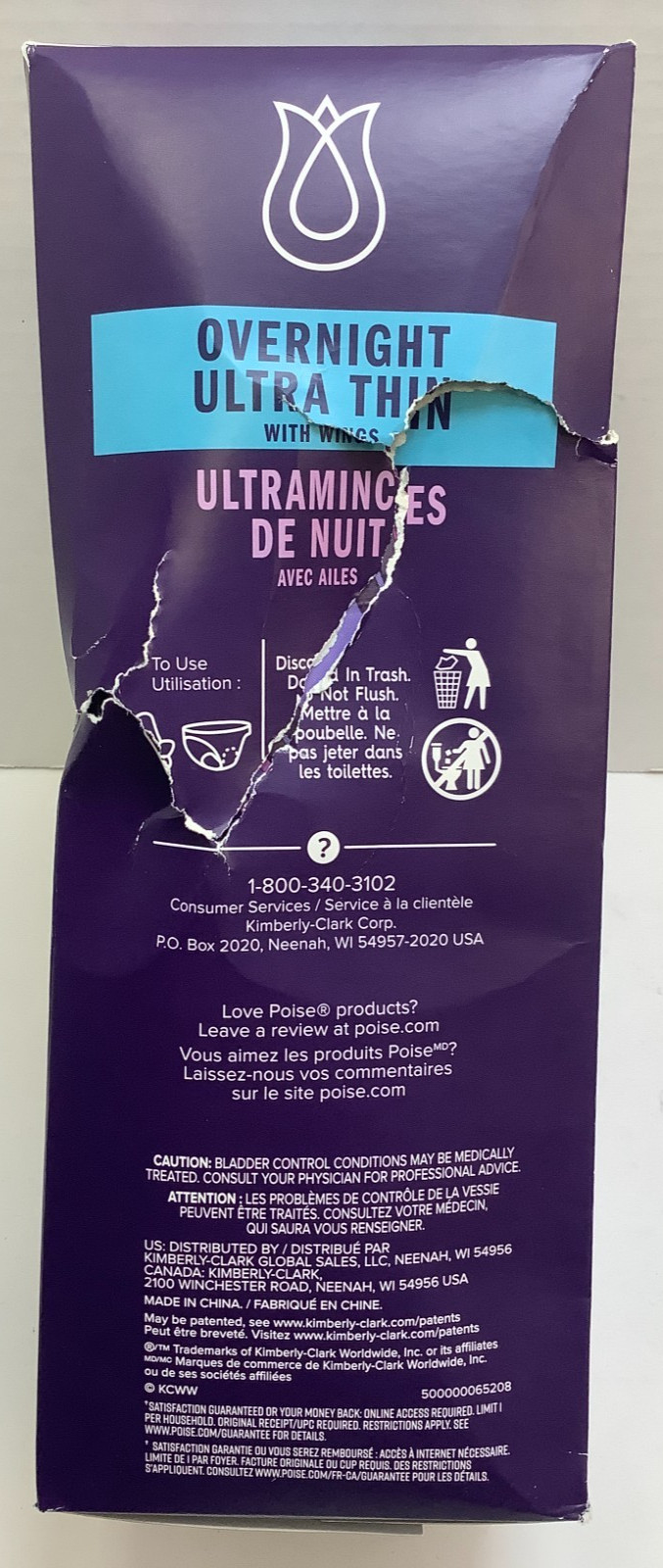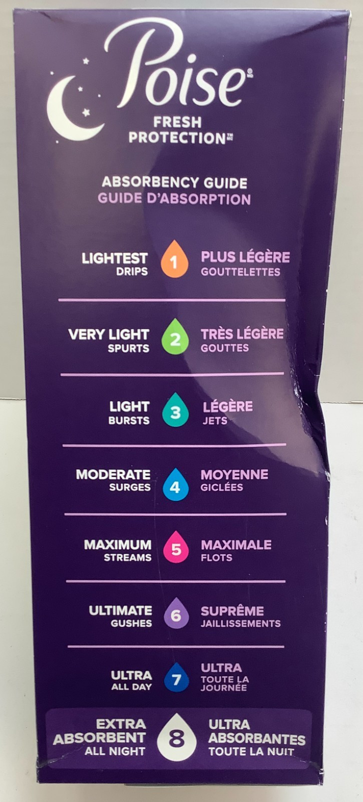 Poise Overnight Ultra Thin Pads w/Wings, 8 Extra Absorbent, 20ct