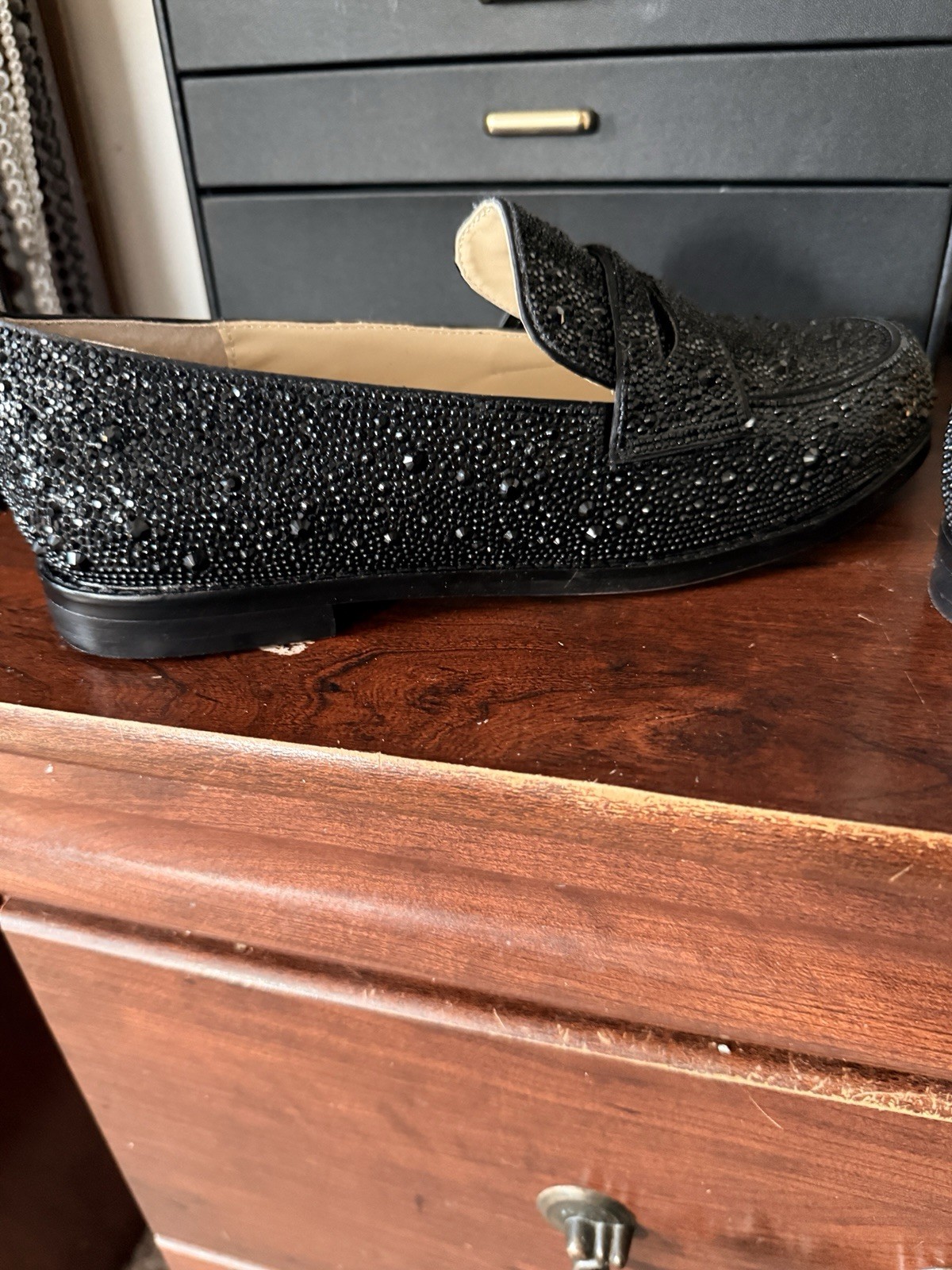 как выглядит Betsey Johnson Black Rhinestone Loafer Flats Comfort Slip On Round Toe фото