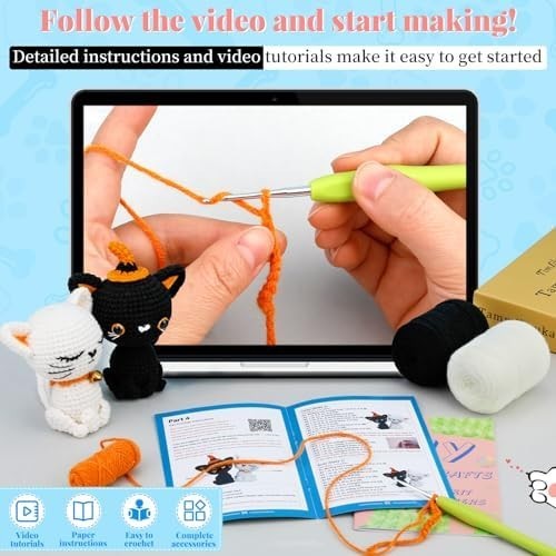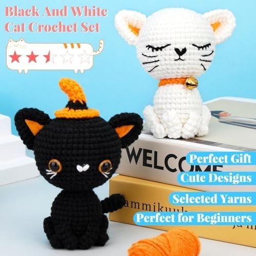 Pnytty Crochet Kit for Beginners, Crochet Animal Kit, 2PCS Cat Starters Crochet
