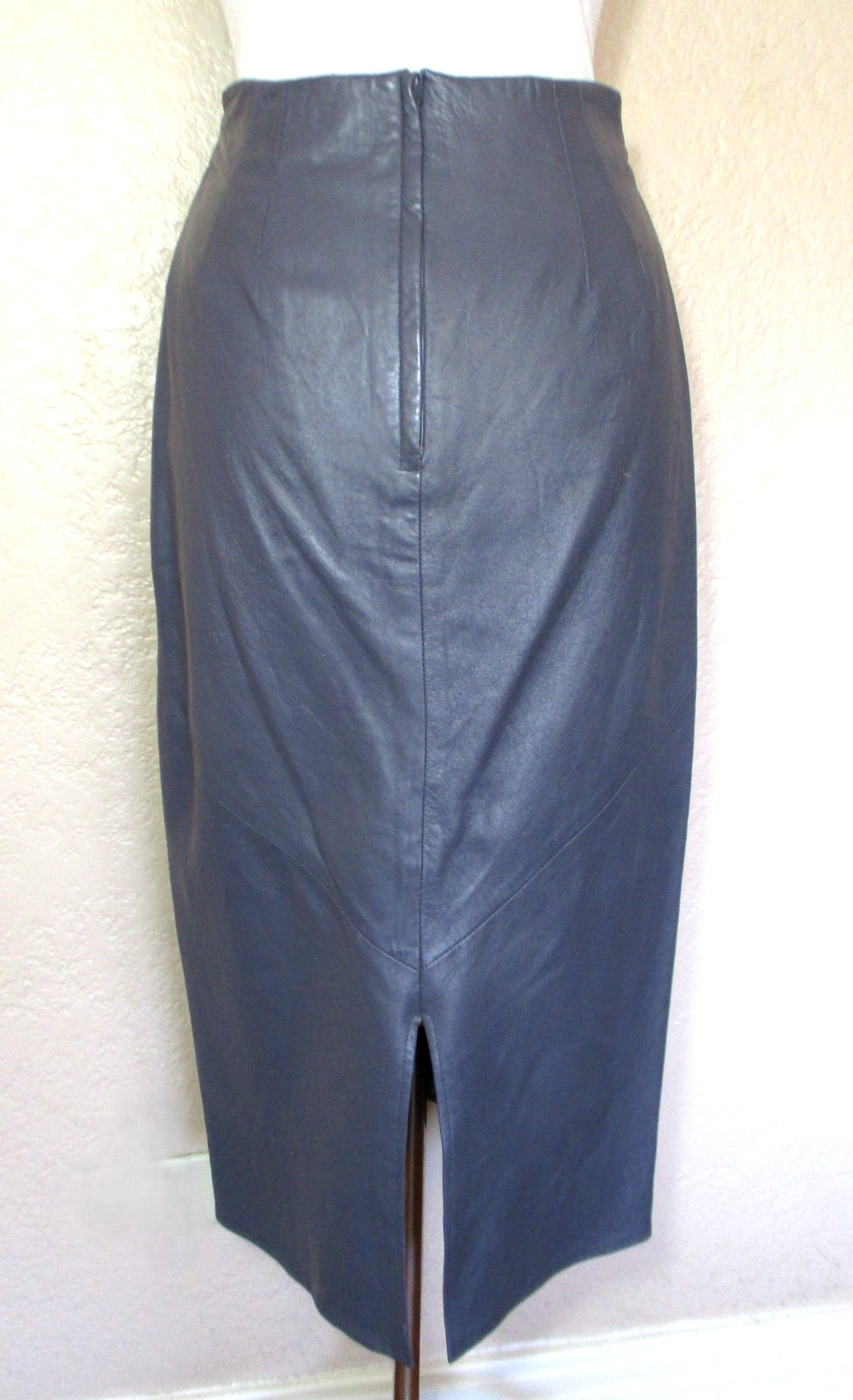 как выглядит Vintage 80s Vakko Leather Pencil Skirt High Waisted Midi Small Women Gray фото