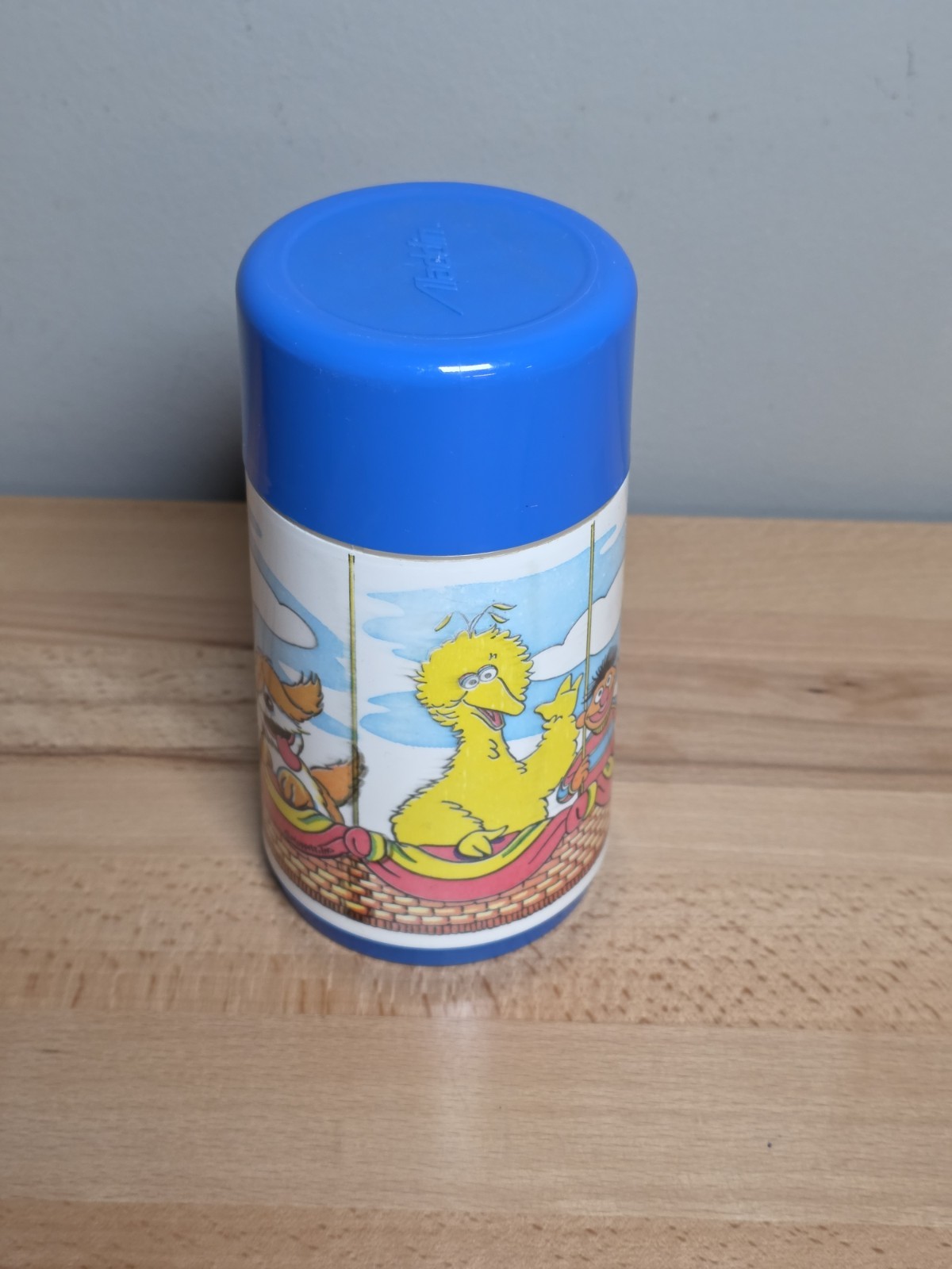 • Vintage Sesame Street Lunch Box Aladdin Blue Plastic Thermos Big Bird