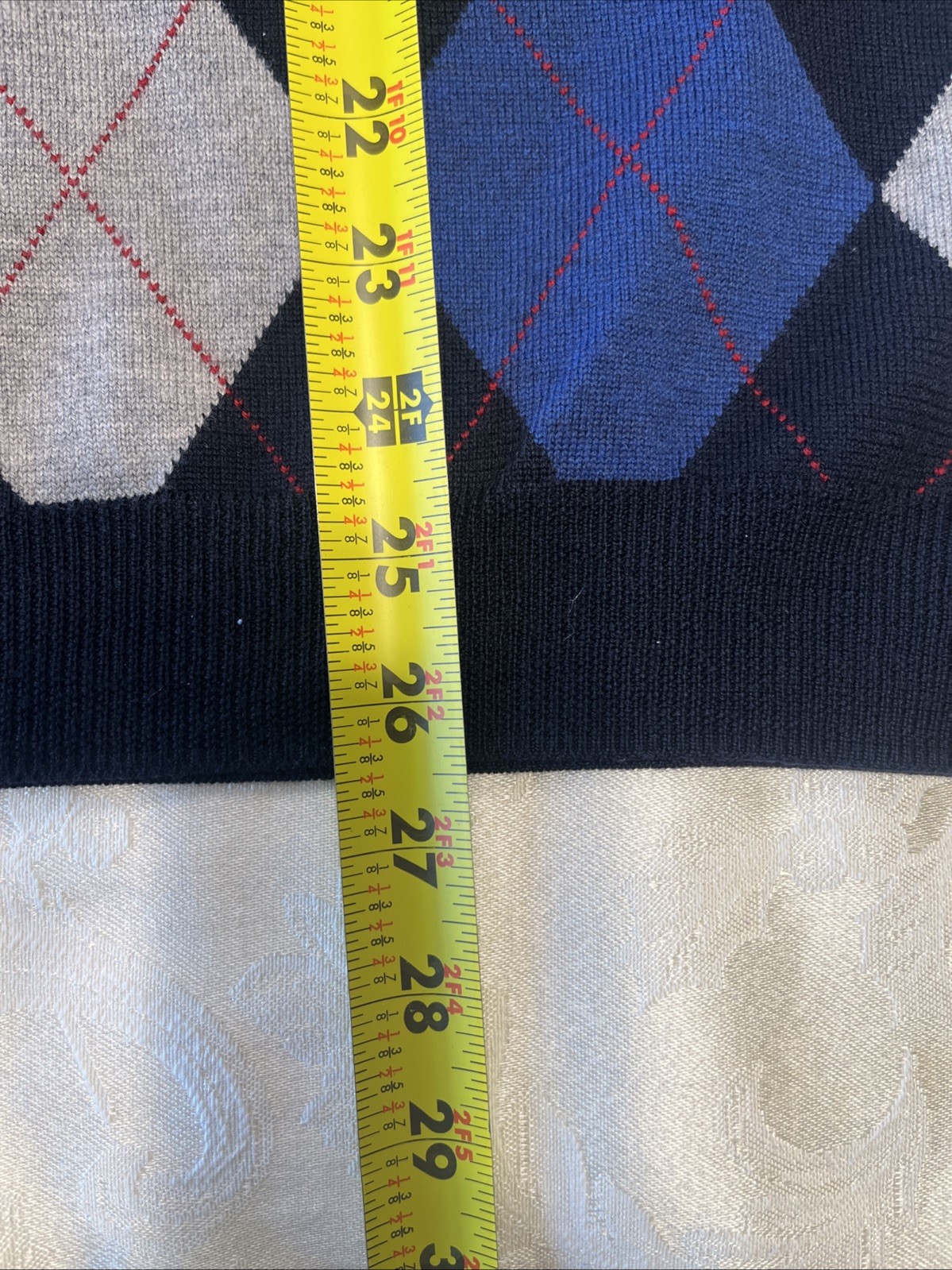 как выглядит Brooks Brothers Sweater Mens XL Navy Gray Argyle V Neck Italian Merino Wool фото