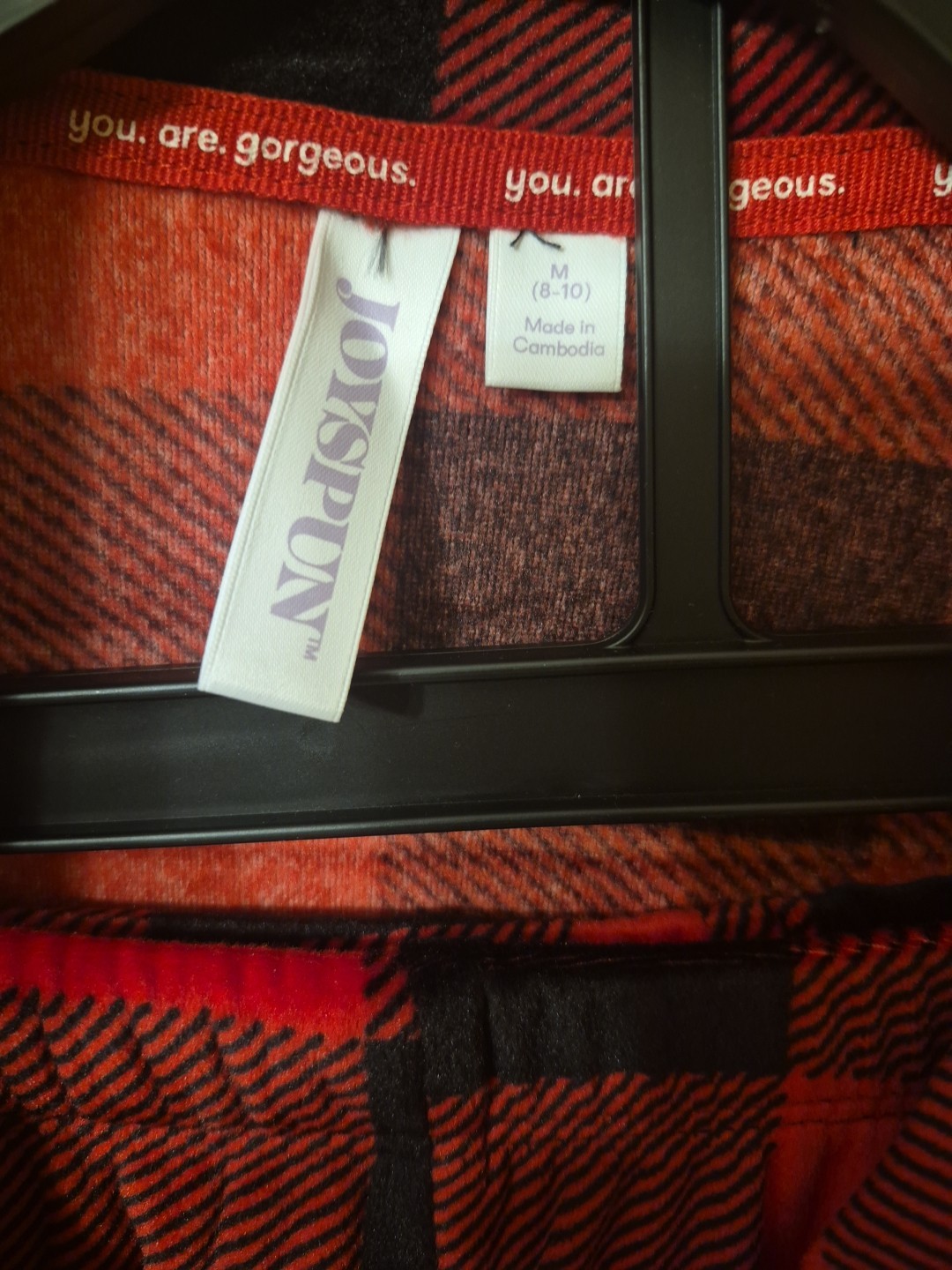 Joyspun Women's Notch Collar 2 Piece Pajama Set Size Medium 8-10 Soft Red Plaid