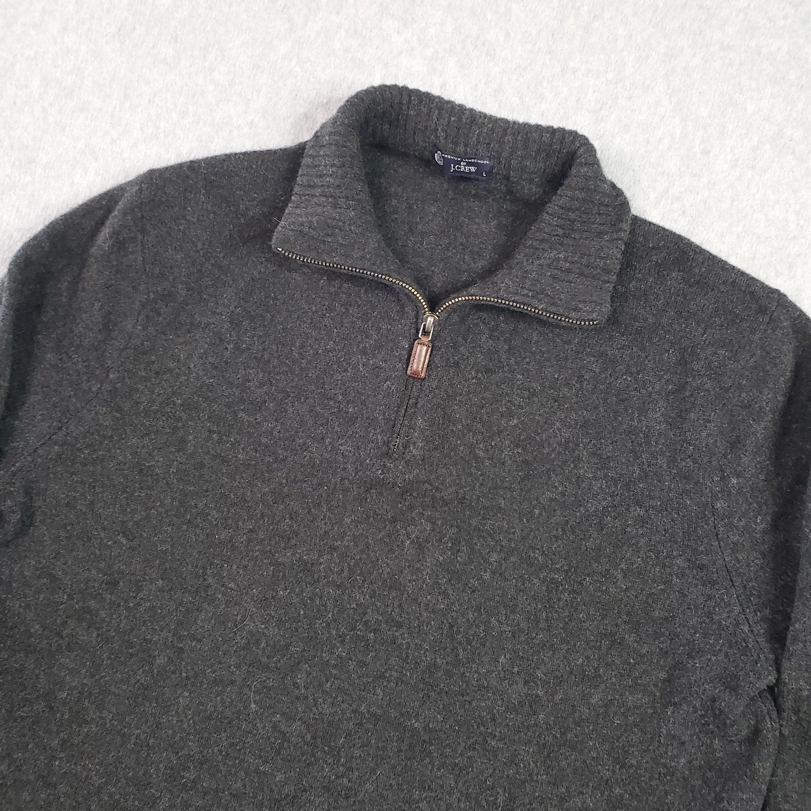как выглядит J.Crew Sweater Mens Large Gray Lambswool Mock Neck 1/4 Zip Pullover Knit фото