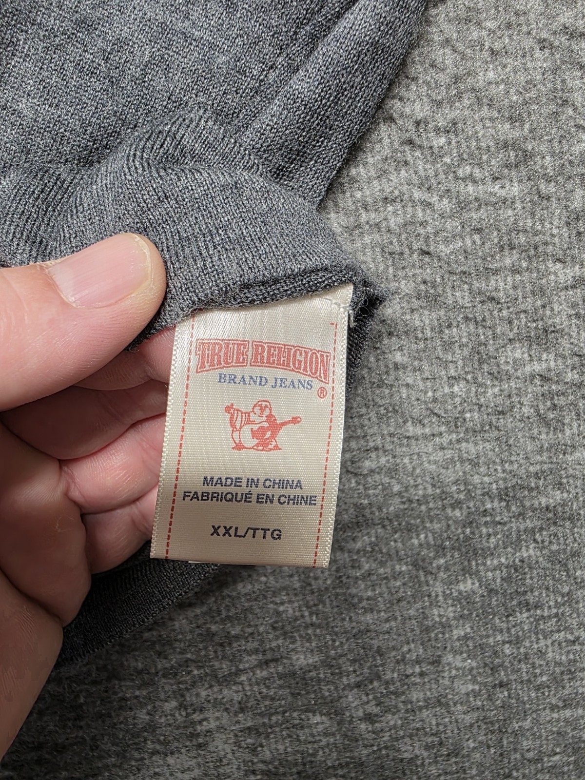 как выглядит True Religion Sportswear Mens V Neck 100 Wool Sweater 2XL Gray Extremely Soft фото