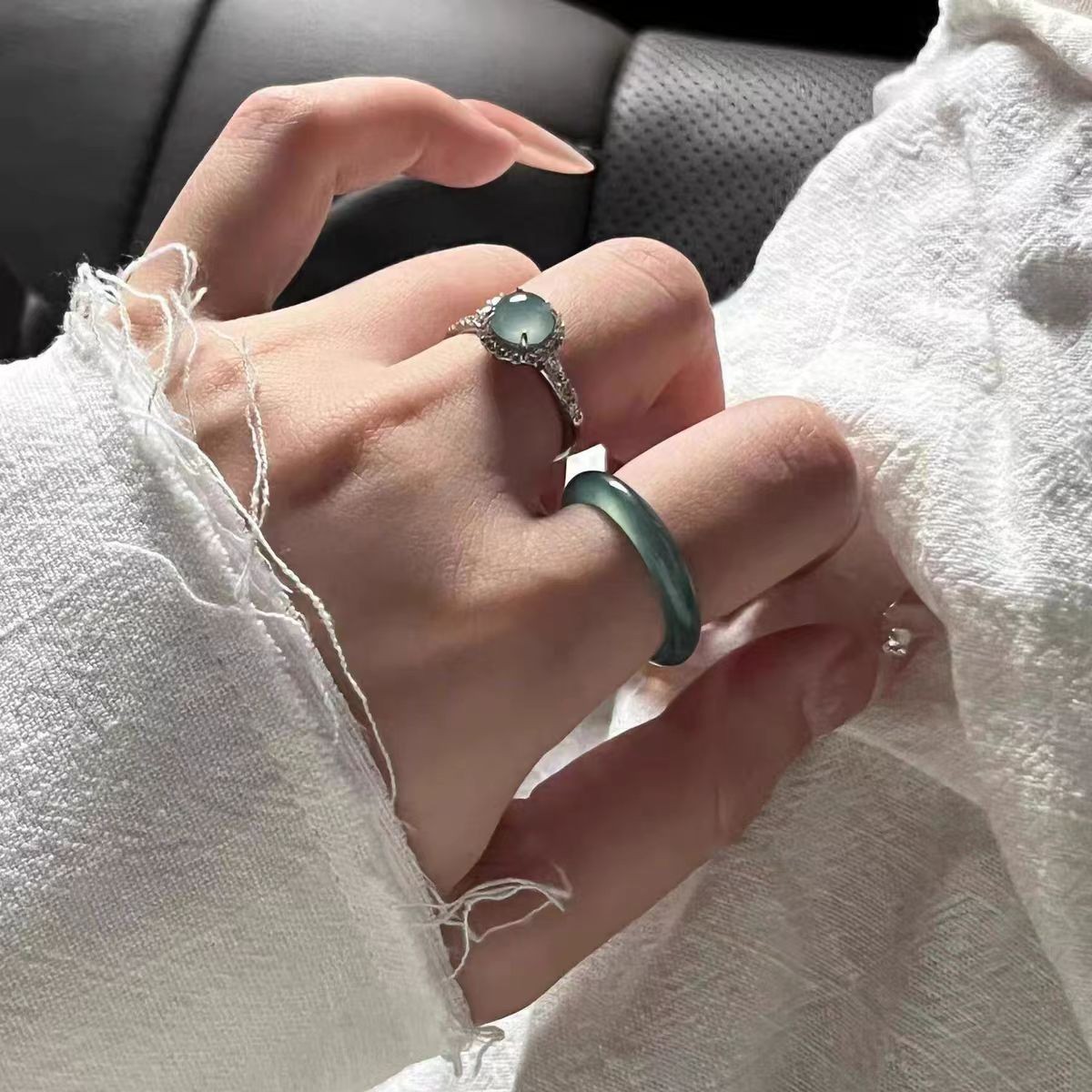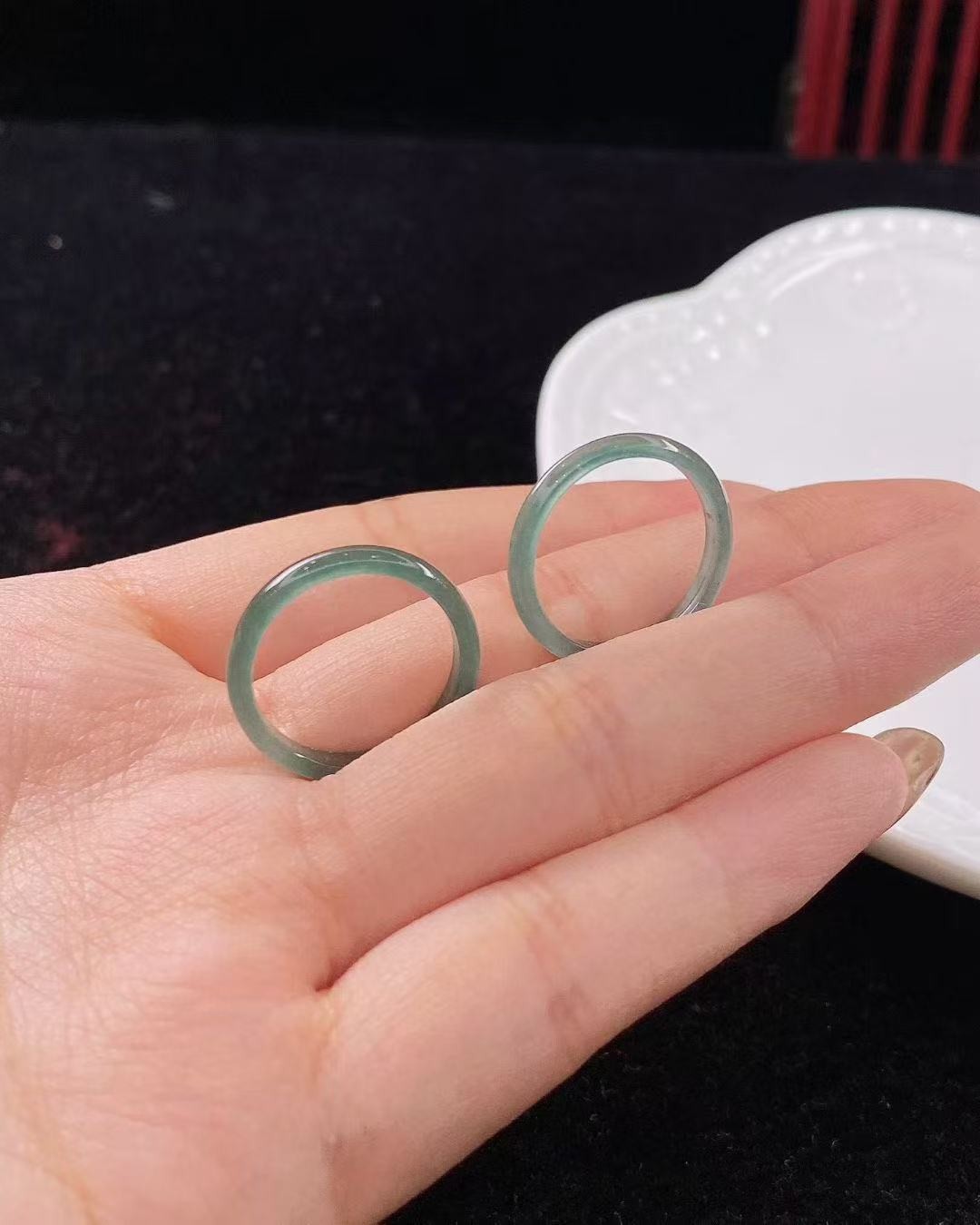 Natural Ice Type A Burmese Jadeite Ring Sky Blue Water Slim Band Unisex
