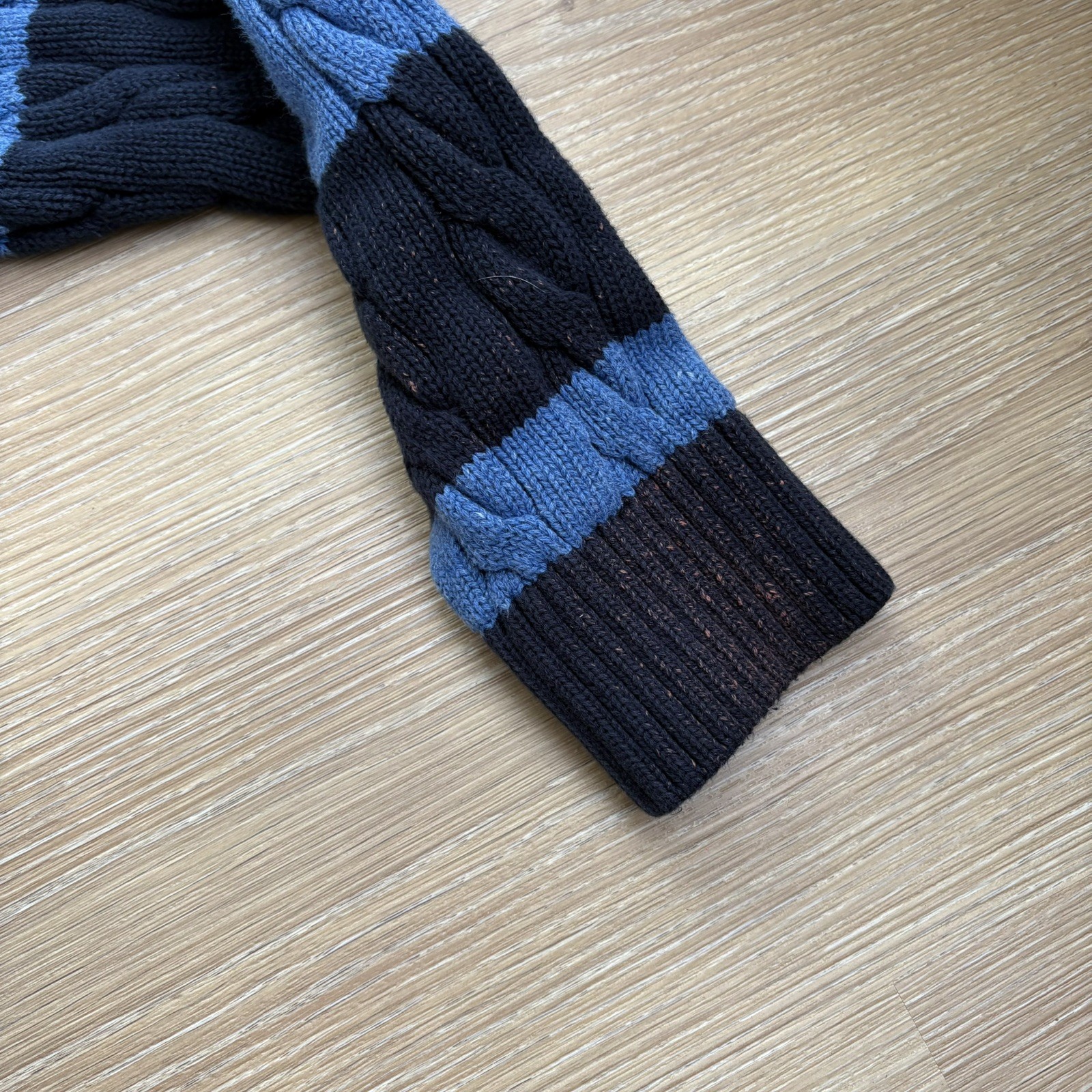 как выглядит LL Bean Mens Sweater Size M Blue Stripe Cable Knit Chunky 100 Cotton фото