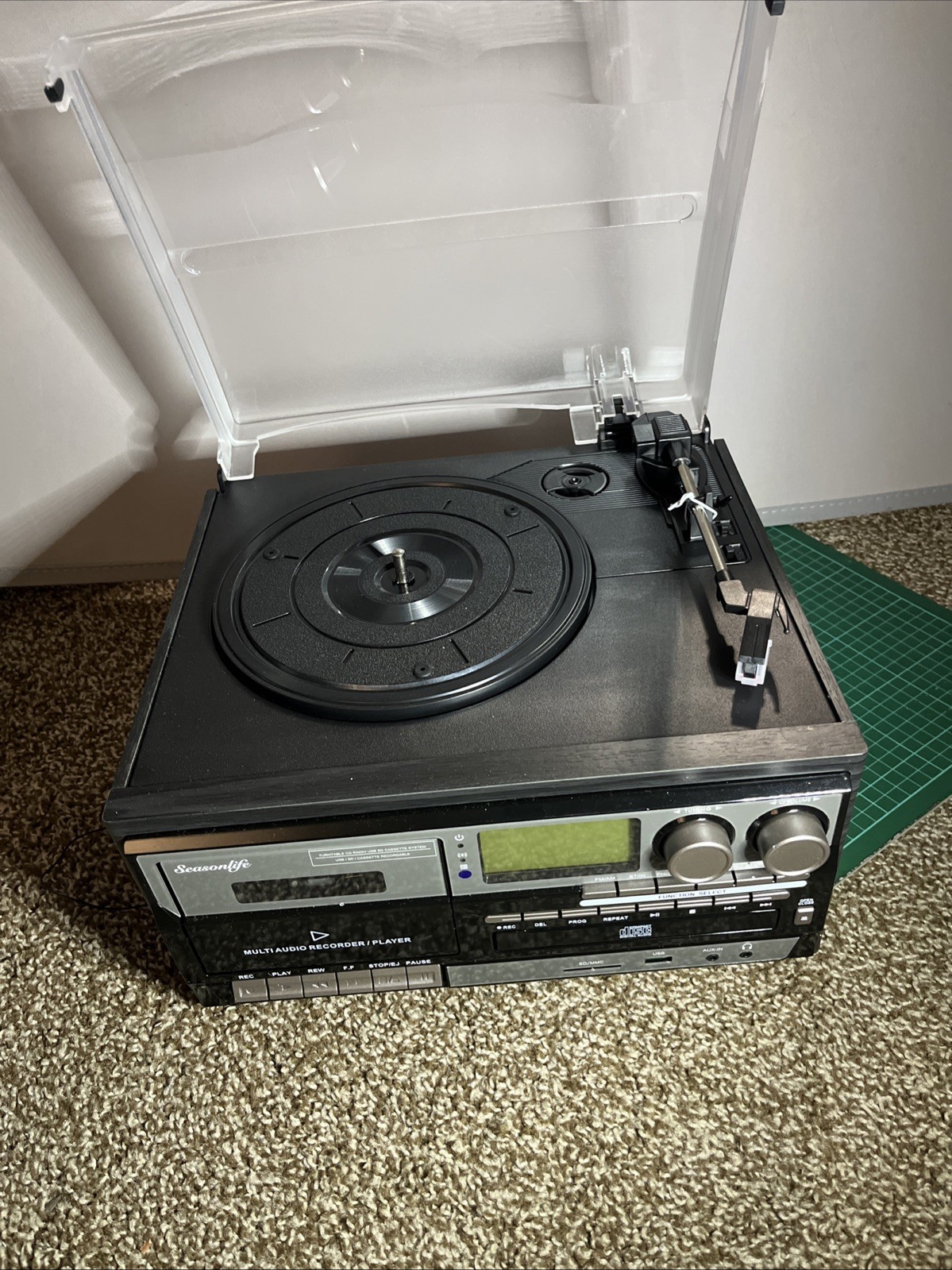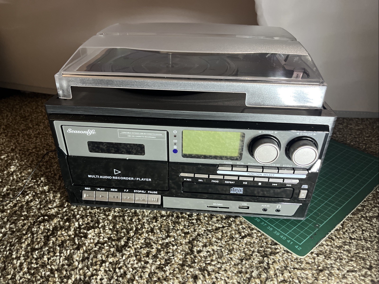 Seasonlife 10-in-1 Bluetooth Record Player, Vinyl Turntable CD Cassette FM/AM